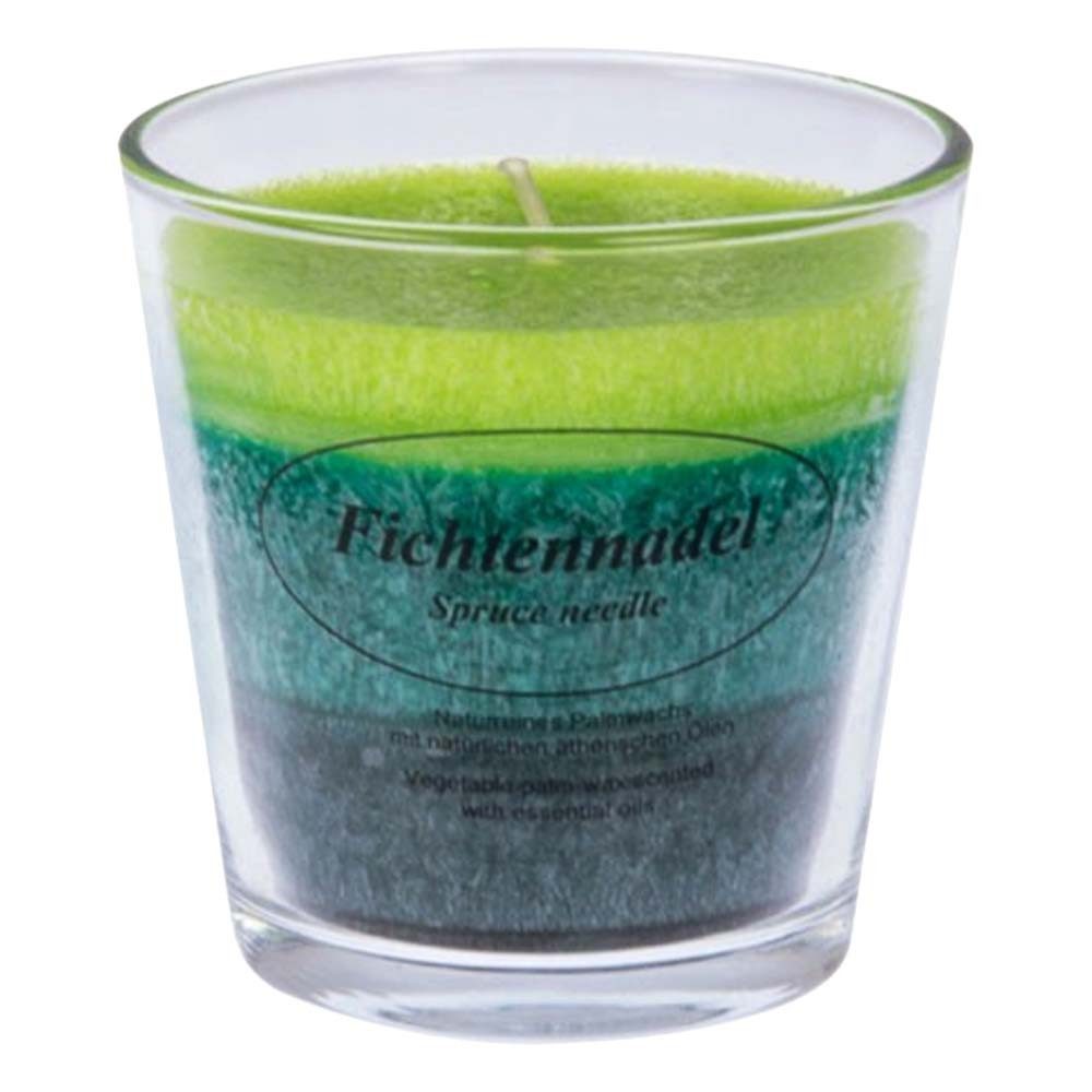 Duftkerze im Glas aus Stearin mit reinen ätherischen Ölen. Diese Kerze im Glas aus reinem Stearin ist 3-farbig von Hand gegossen und mit dem Duft reiner ätherischer Öle beduftet.