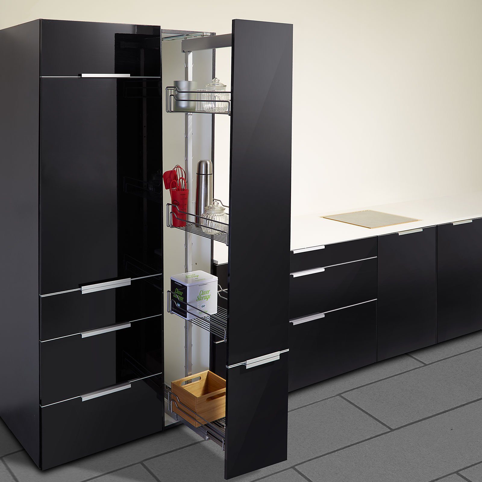 Komplettset Dispensa-X Hochschrankauszug SILBERGRAU matt Für Schrankinnenhöhen von 1200 - 1600 mm inkl. 4 Einhängekörbe für 300 mm Schrankbreite