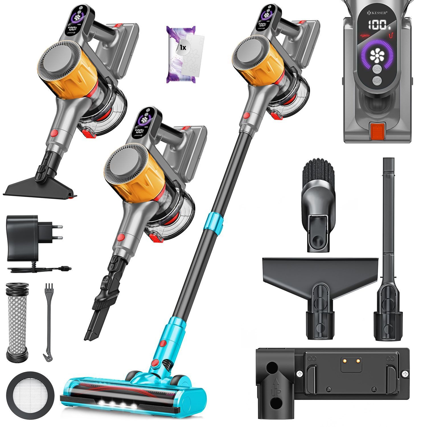 KESSER leistungsstarker Staubsauger: 260W Motor, 28kpa Saugleistung, HEPA-Filter (99% Staubentfernung), 60 Min Akkulaufzeit, 2,8kg leicht, leise bei 82dB, inkl. LED-Frontlichter, Wandhalterung & Duftscheibe für frischen Raumduft.