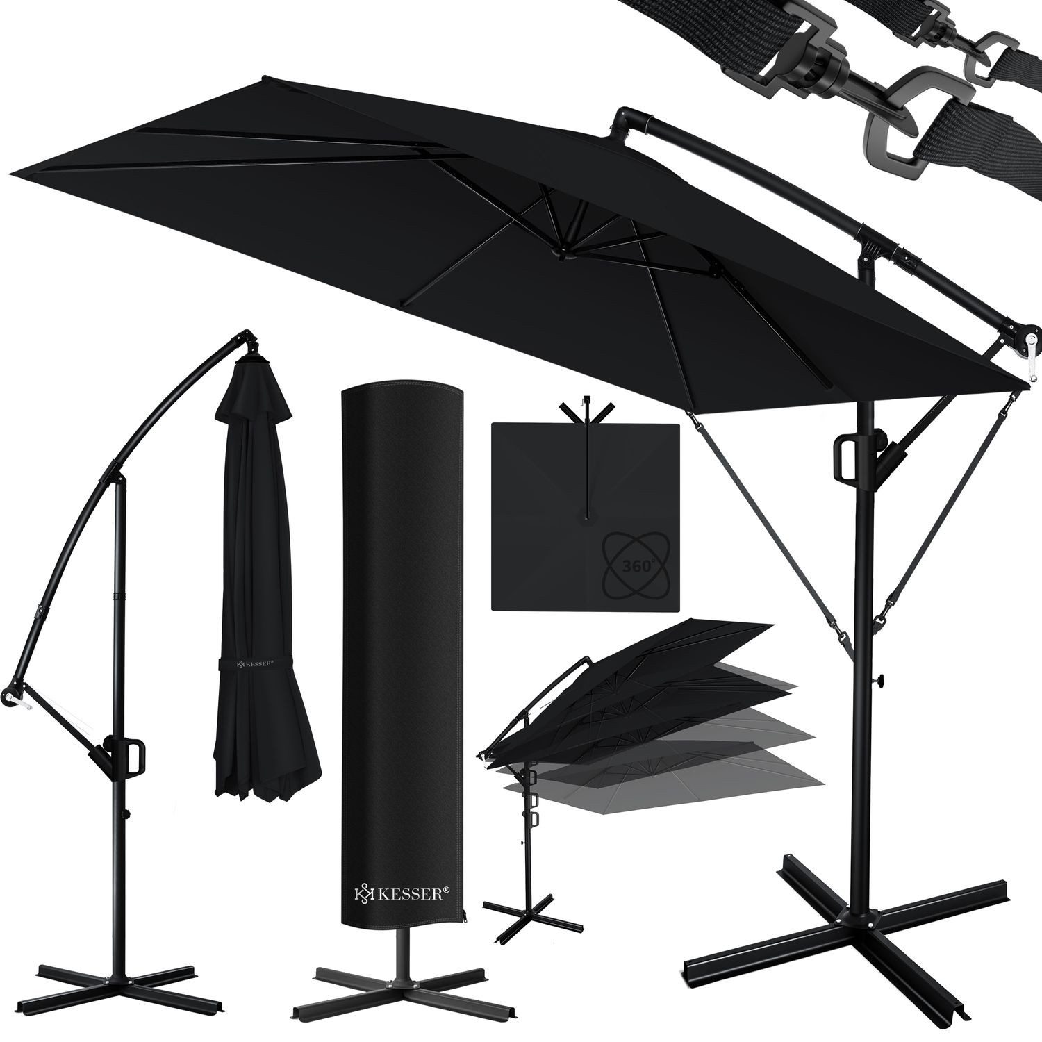 KESSER Sonnenschirm "Eckig" für großflächige Schattenfläche, integrierter Kurbelmechanismus und stabiler Standfuß, platzsparend dank effektiver Falttechnik, wasserabweisende Schirmbespannung und rostfreies Aluminium, inkl. Regencover