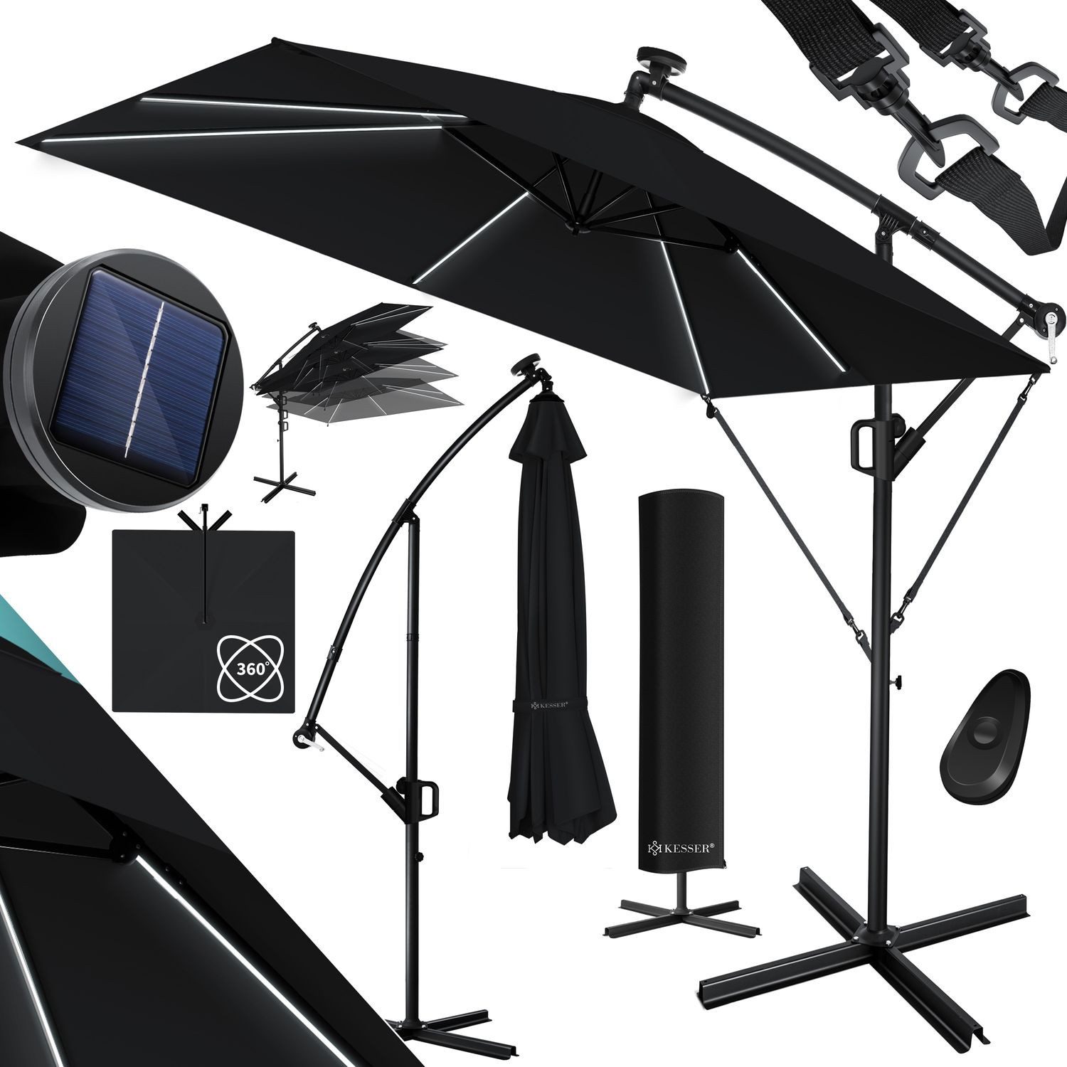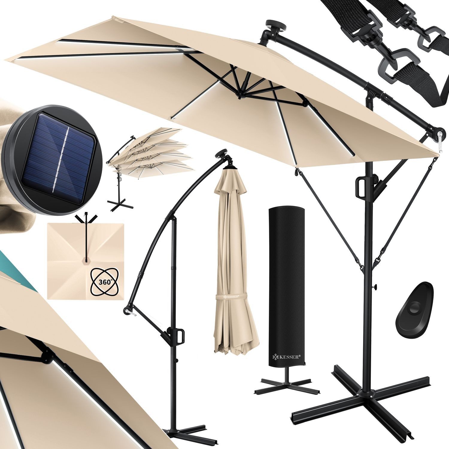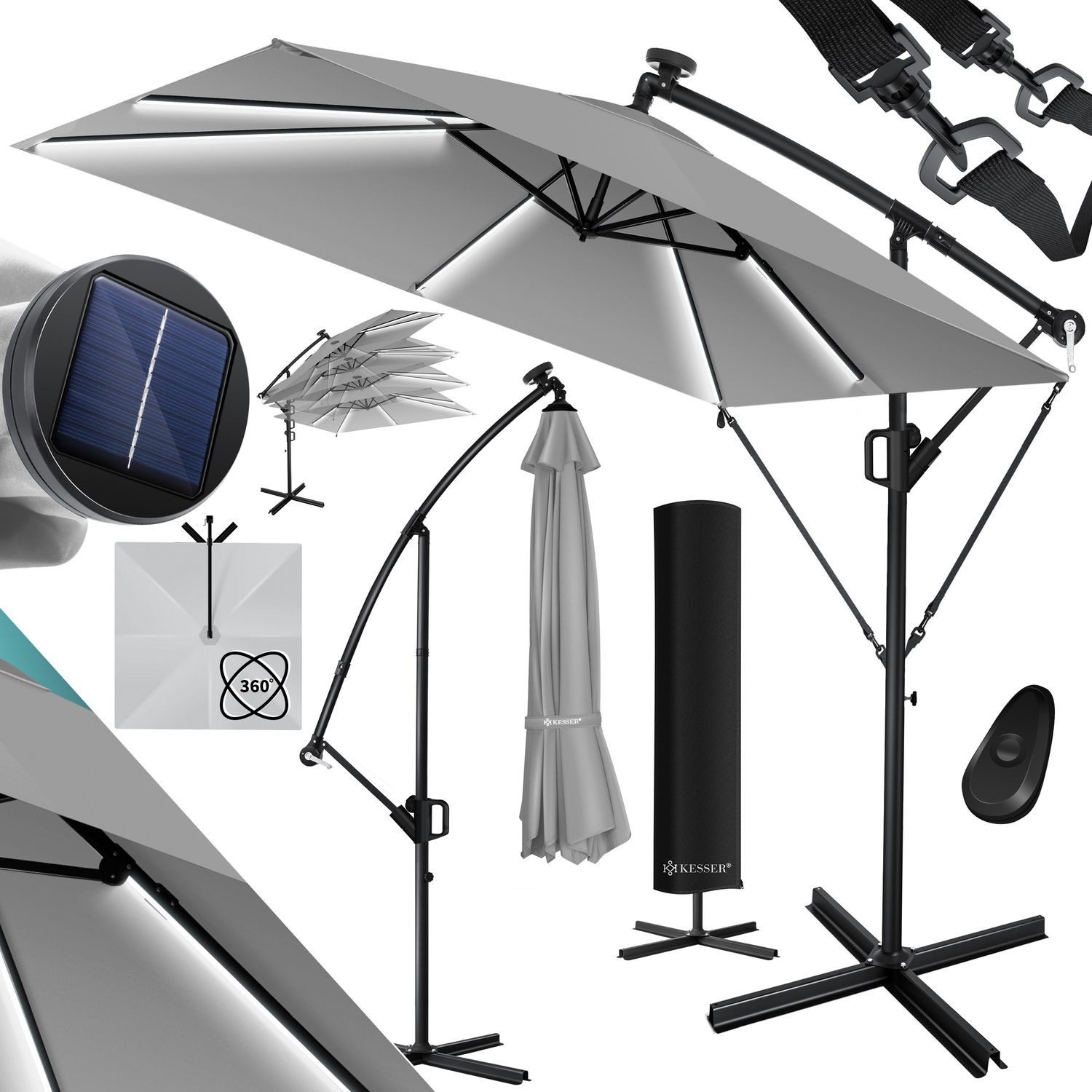 Unser Sonnenschirm aus dem Hause KESSER ist ein hochwertiges und robustes Produkt, das für den Einsatz im Freien konzipiert wurde. Mit einer großzügigen Schattenfläche von über 6m² bietet der Schattenspender viel Platz und Schutz für Sie und Ihre Gäste. Ob auf der Terrasse, im Garten oder auf dem Balkon - der Ampelschirm sorgt für ein angenehmes Ambiente und schützt vor schädlicher Sonneneinstrahlung und schlechtem Wetter.
