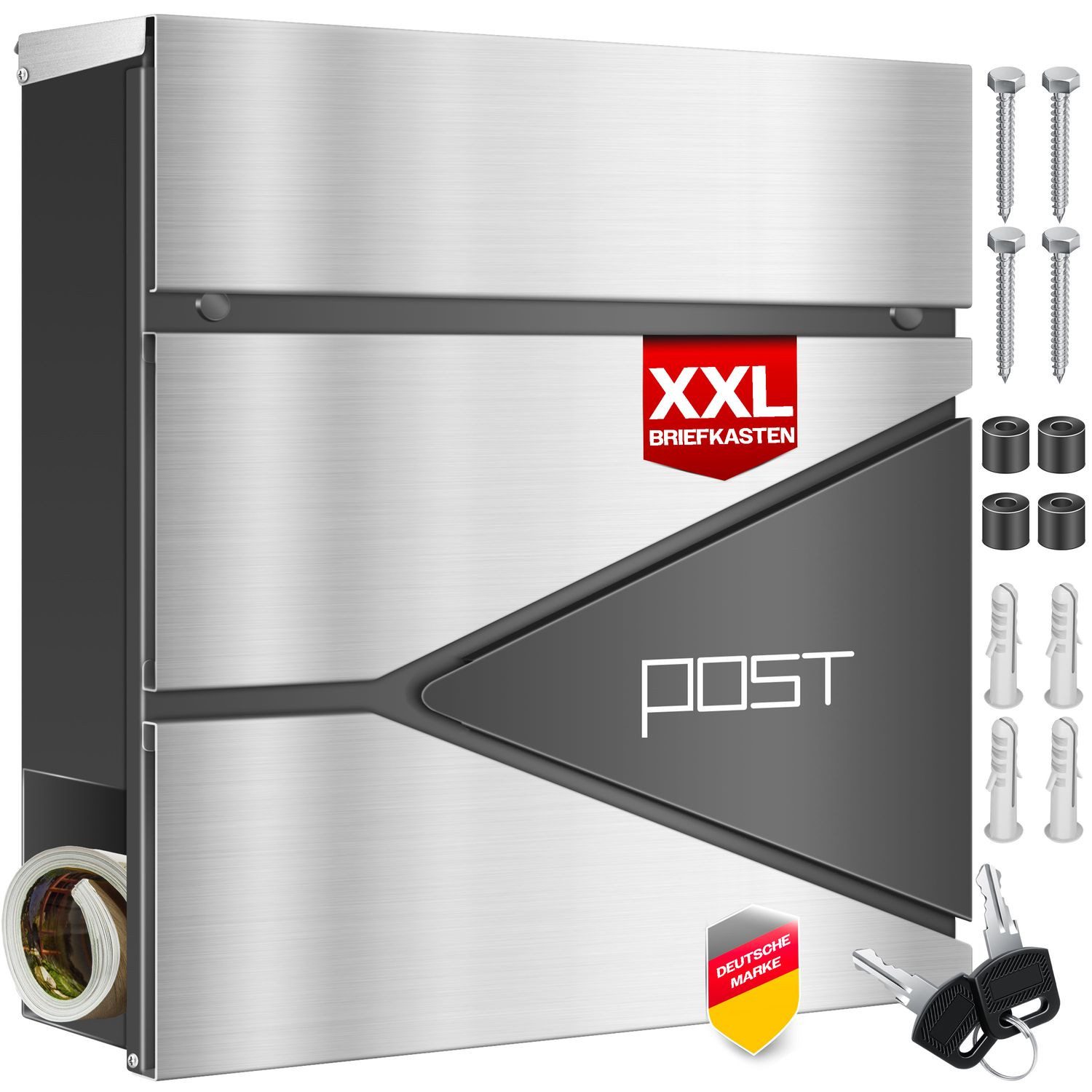 KESSER Briefkasten beeindruckt mit einem geräumigen C4-Briefschlitz, robustem pulverbeschichtetem Stahl, einem sicheren Zylinderschloss, praktischem Zeitungsfach, vielseitiger Montagemöglichkeit, leisem Softclose-Deckel und intelligenten Gummistoppern