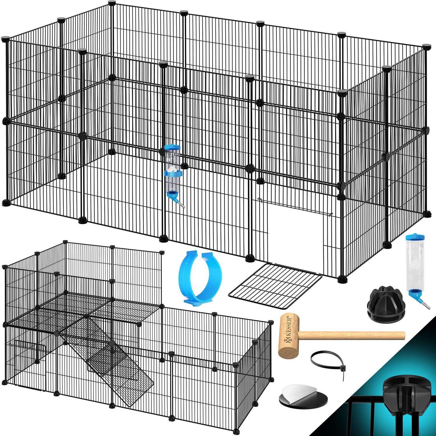 KESSER Freigehege mit einem Gitterabstand von 1,5cm für mehr Sicherheit, modulares System für viele Formen mit einer großen Fläche, einfacher Auf- und Abbau dank Stecksystem, inkl. praktischer Tür für eingeständiges Verlassen Ihrer Haustiere