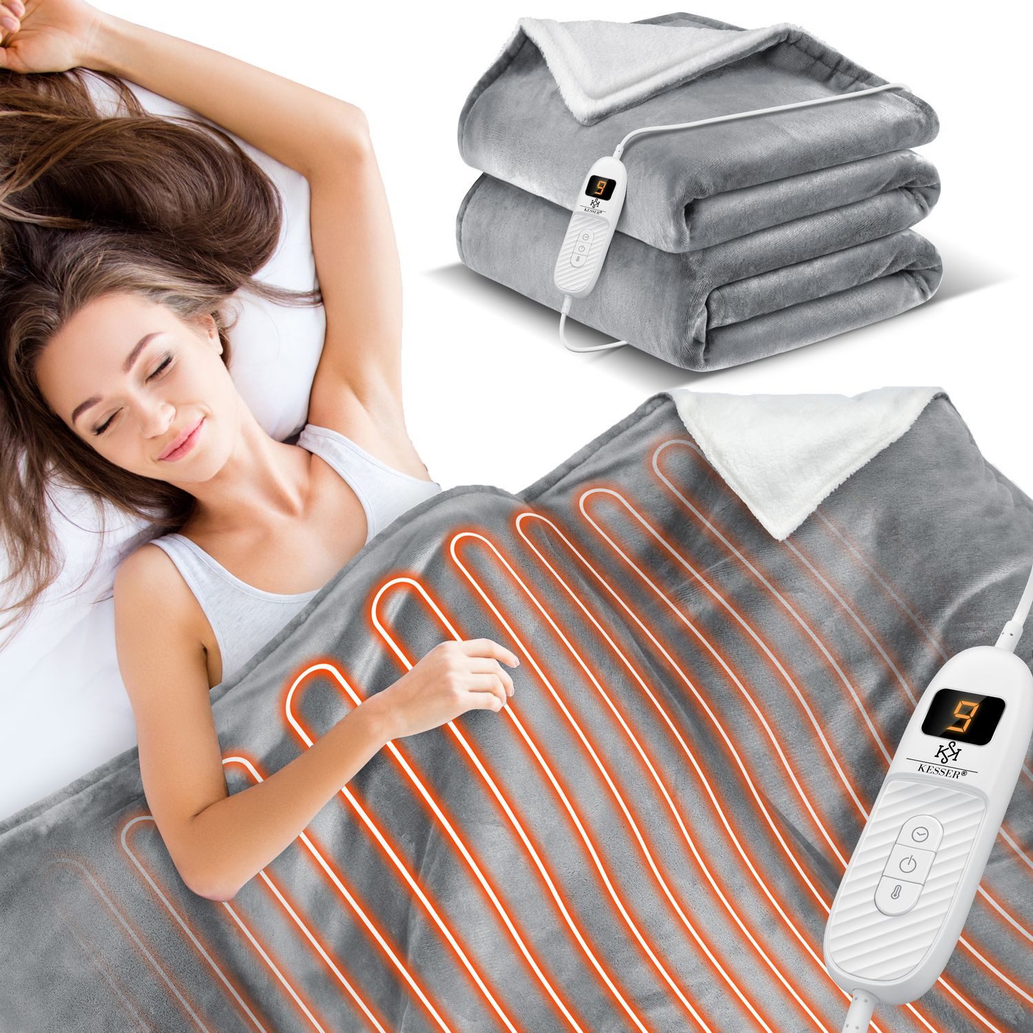 KESSER Kuscheldecke, flauschiger Materialmix, 9 Wärmestufen, Auto-Off-Timer, Turbo Heat, Maschinenwaschbar, hautfreundlich, Überhitzungsschutz, drei Größen verfügbar