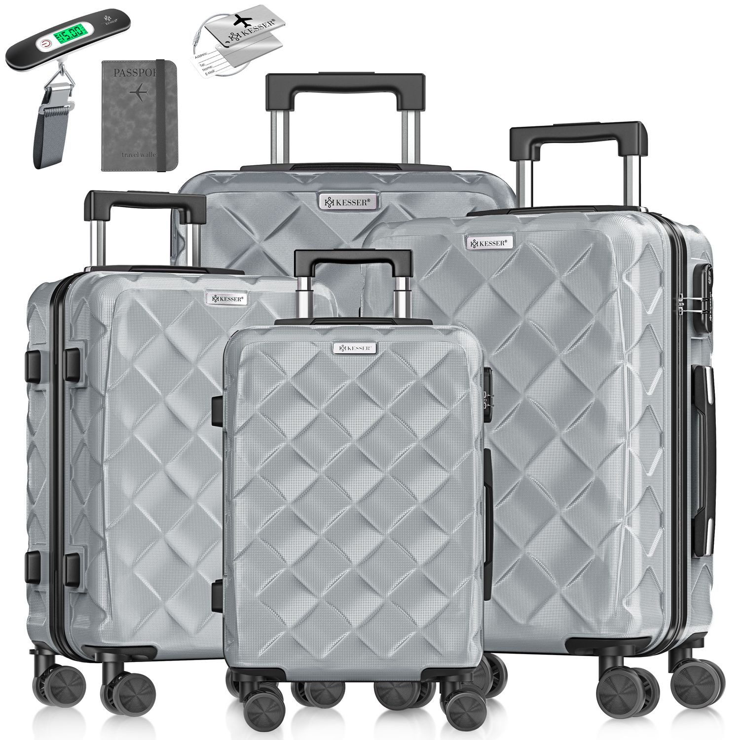 KESSER® Reisekoffer Set – 4-teilig mit integriertem Zahlenschloss, Kofferwaage & Gepäckanhänger