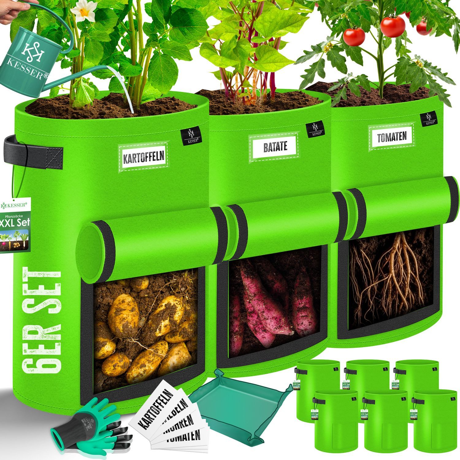 KESSER Kartoffelpflanzsack mit praktischen Namensschildern, ein Visualisierungsfenster für einfache Ernten, flexible Nutzung drinnen und draußen, atmungsaktiven Vliesstoff für optimales Wachstum, verstärkte Tragegriffe für müheloses Bewegen und ein grobes Sichtfenster