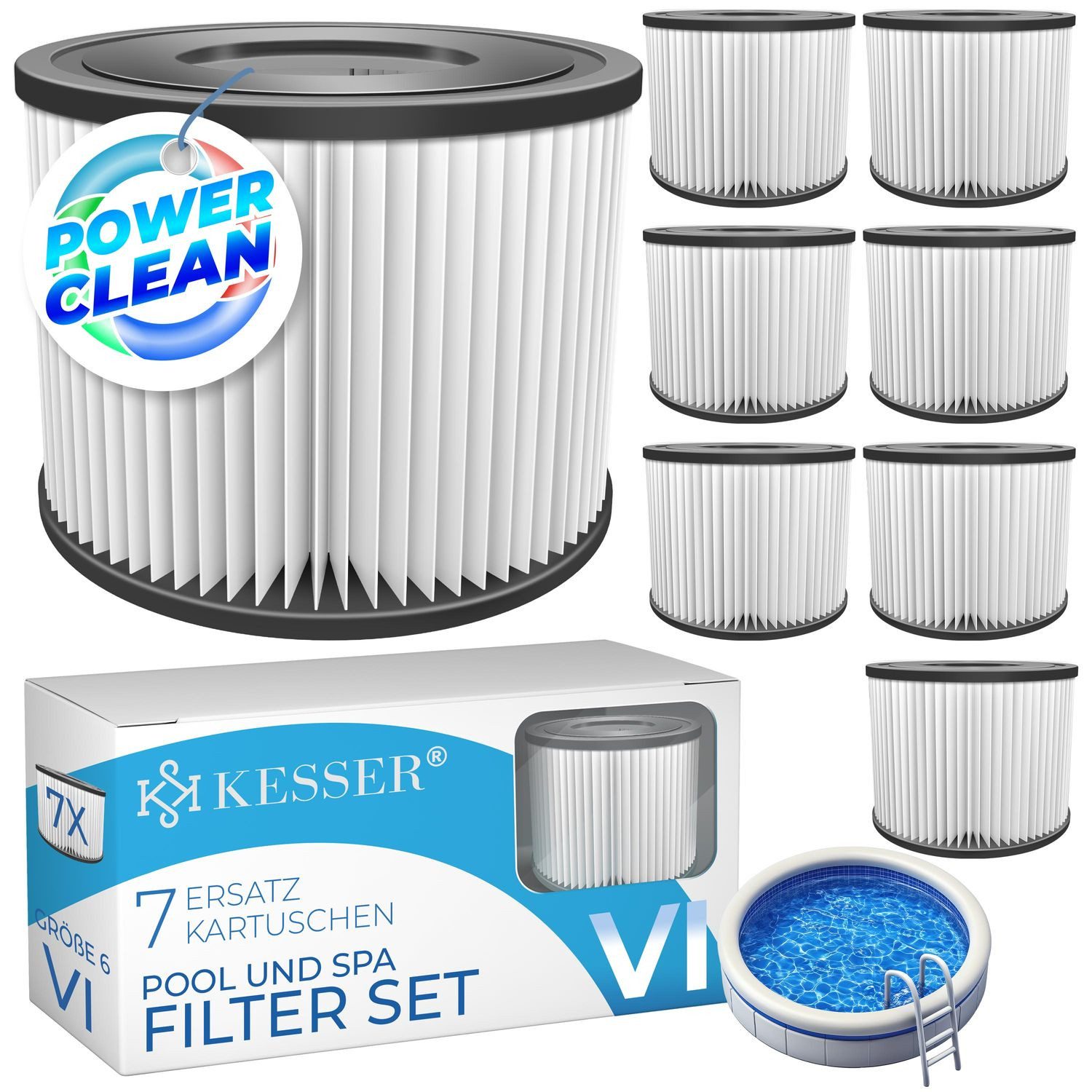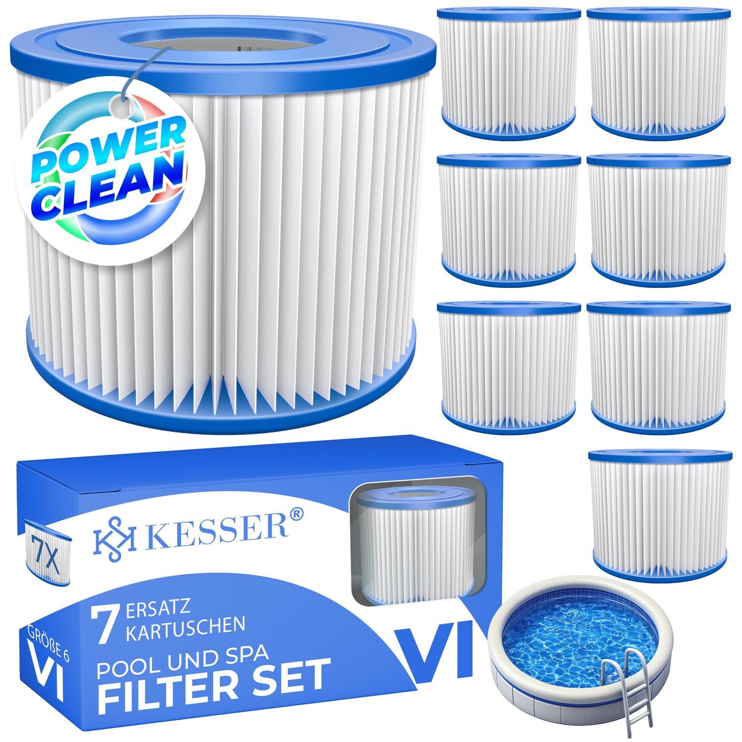 KESSER® Poolfilter, 7 Ersatz-Kartuschen, Размер 6, Pool- und Spa-Filterset, BPA-frei, bleifrei, Anti-Keim