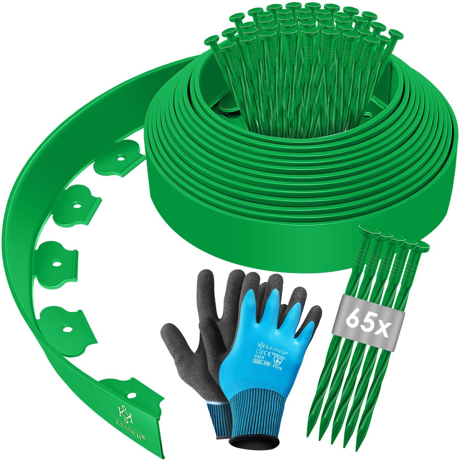 KESSER Rasenkante Premium, unendlich kombinierbar für die perfekte Длина, hochwertiges und recyclebares Material, inkl. spiralförmige Nägel für schnelle Befestigung, witterungsbeständig und temperaturfest, flexible Nutzung für Linien.