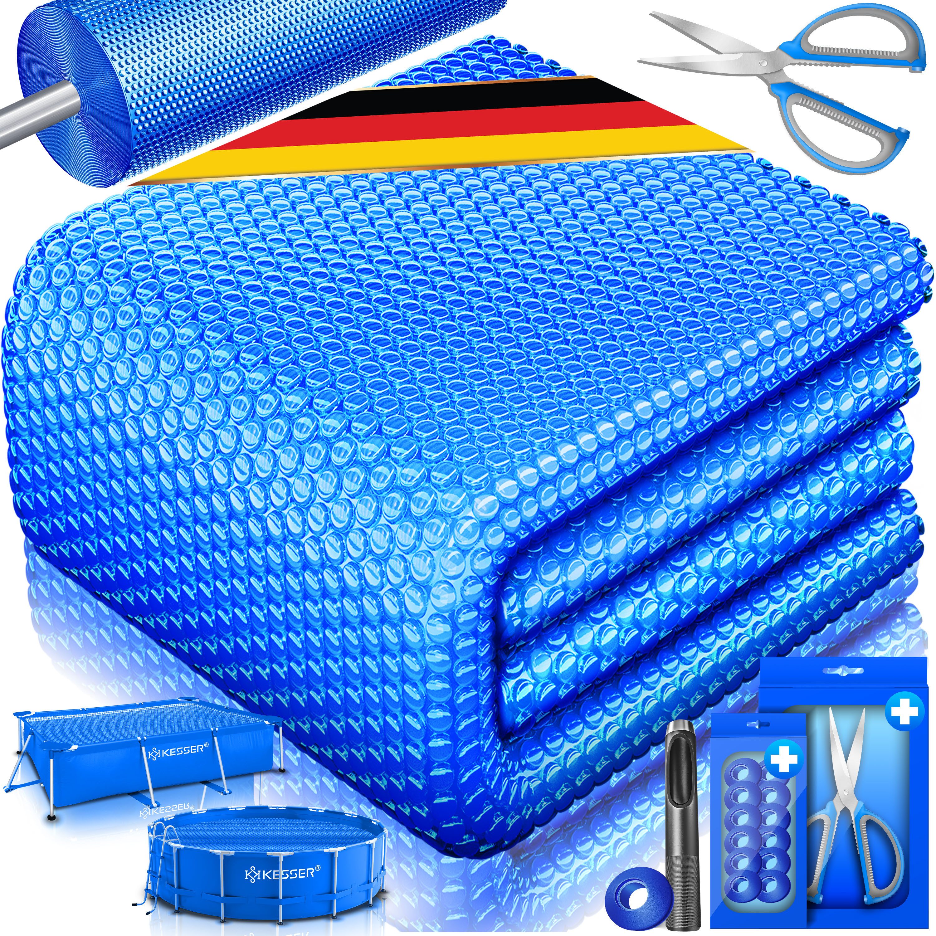 KESSER® Solarabdeckplane – flexibel zuschneidbare Poolabdeckung mit Solarwärme-Effekt, 400 µm Materialstärke, inkl. Zubehör-Set