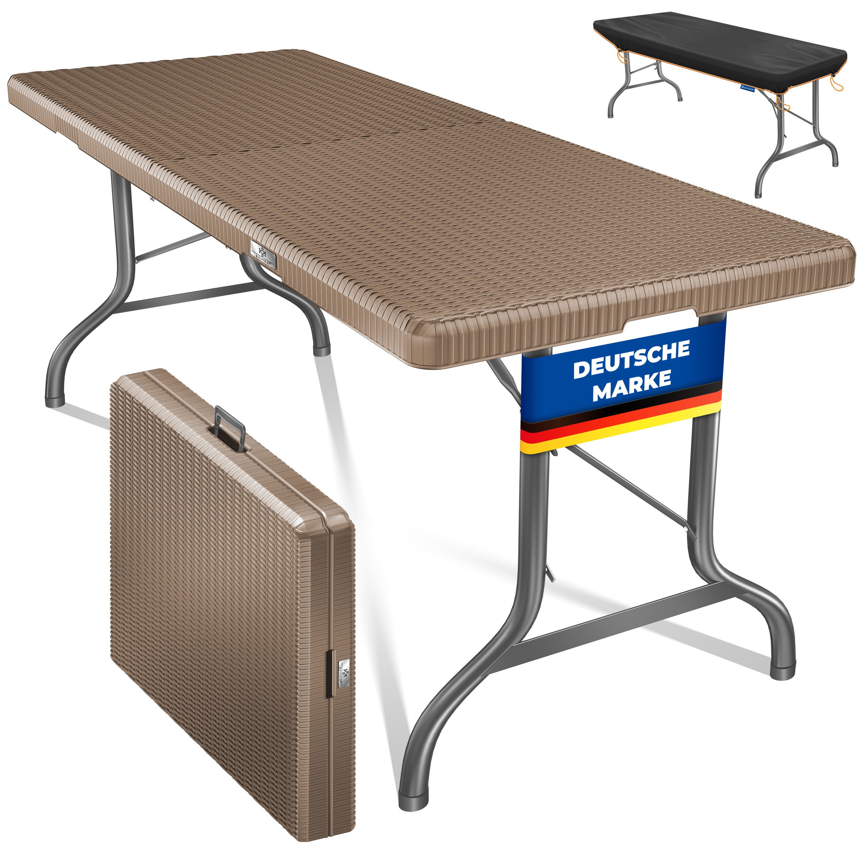 • Klapptisch Rattan-Look 183x76cm mit Tragegriff