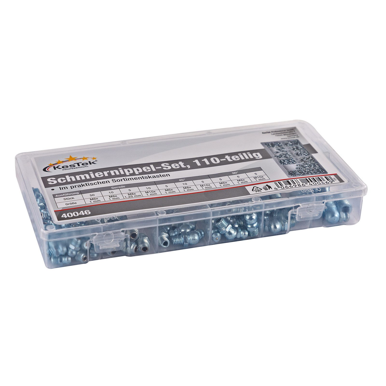 Unentbehrlich für jeden Hand- und Heimwerker. Mit Ihrem neuen KesTek Schmiernippel Меню haben Sie alle gängigen Größen sofort zur Hand. Zur sicheren Aufbewahrung befinden sich die Schmiernippel in einem praktischen Менюskasten.