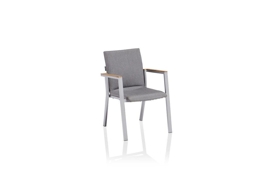 Lieferumfang:1x KETTLER Rasmus Stapelsessel, Silber/Flanelle, Aluminium/Outdoor-Stoff/Teak, ca. 60x62x85 cmMaße
