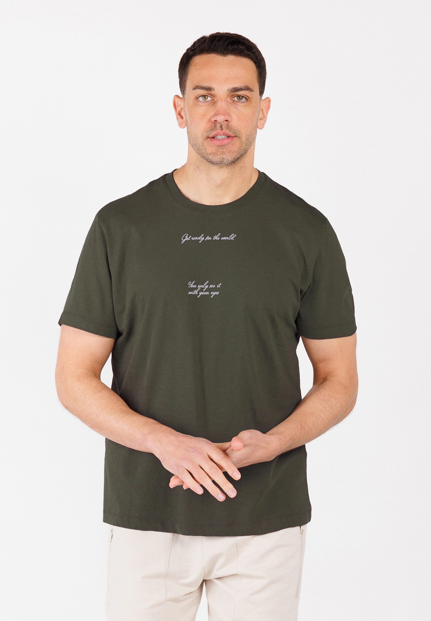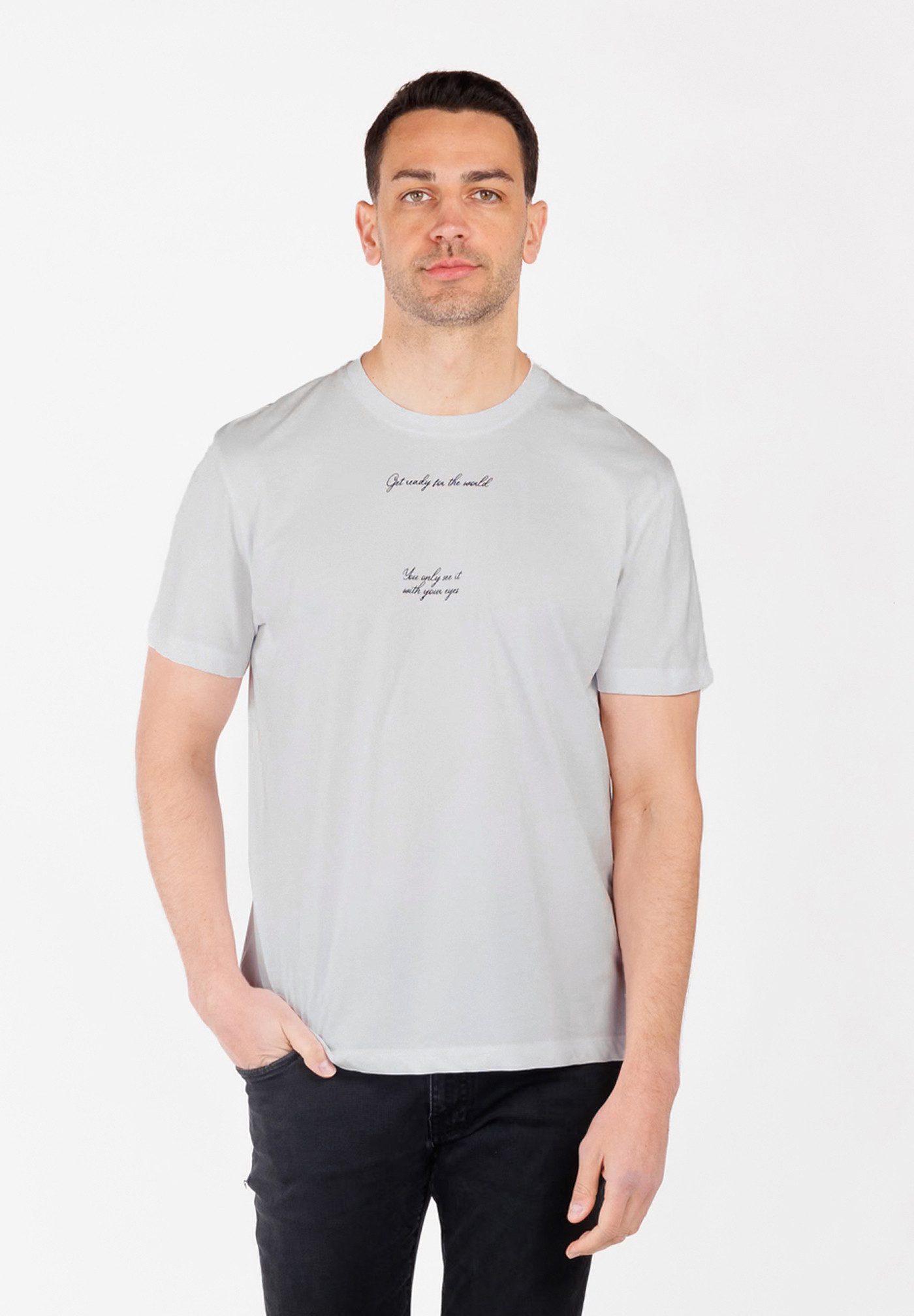 Design: Klassisches Rundhals-T-Shirt mit ansprechenden Prints auf der Brust und Rücken, der das Design abrundet und dem Shirt eine besondere Note verleiht.