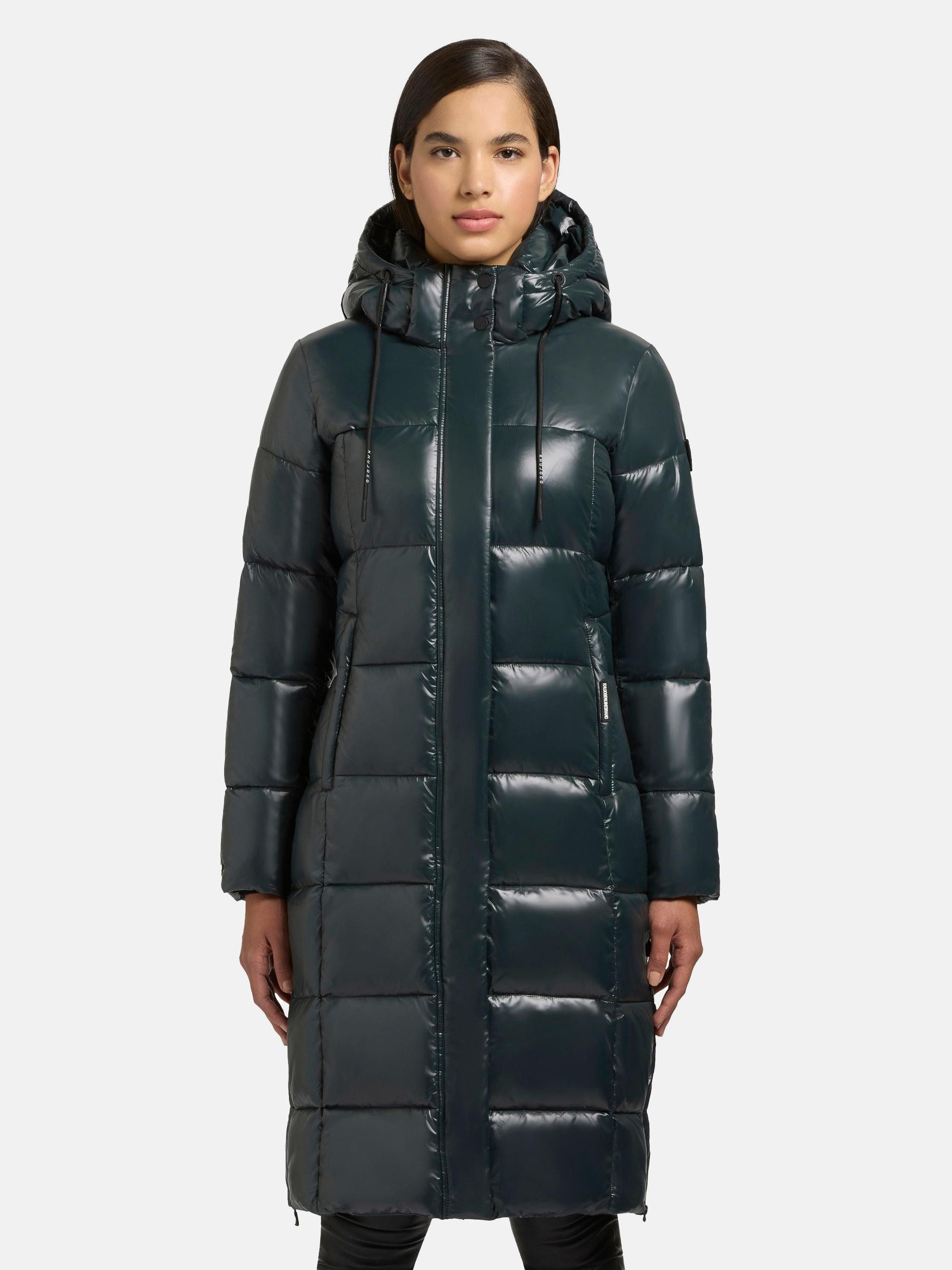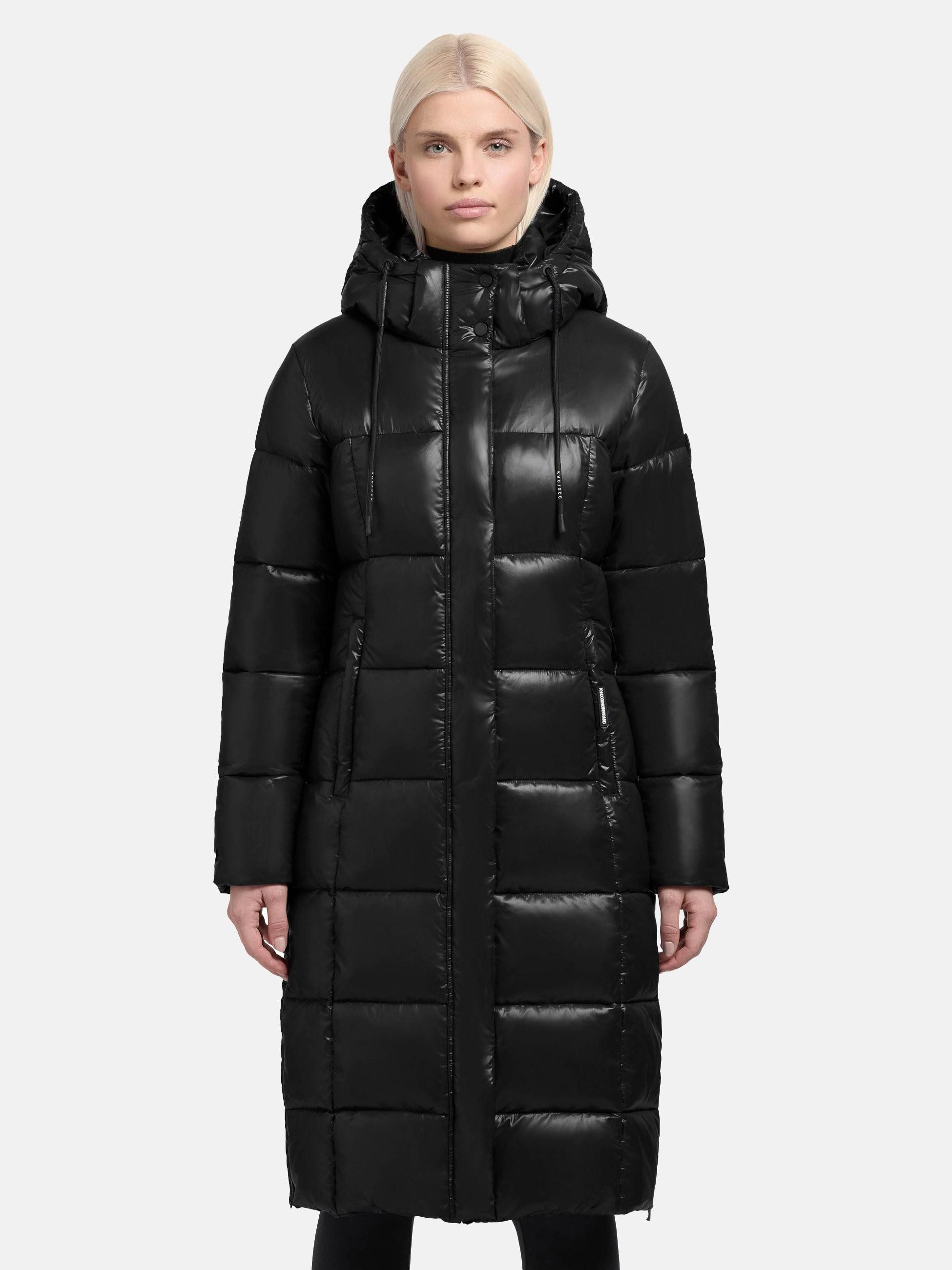 Besondere Merkmale | Glänzender Damen Wintermantel mit (abnehmbarer) Kapuze |