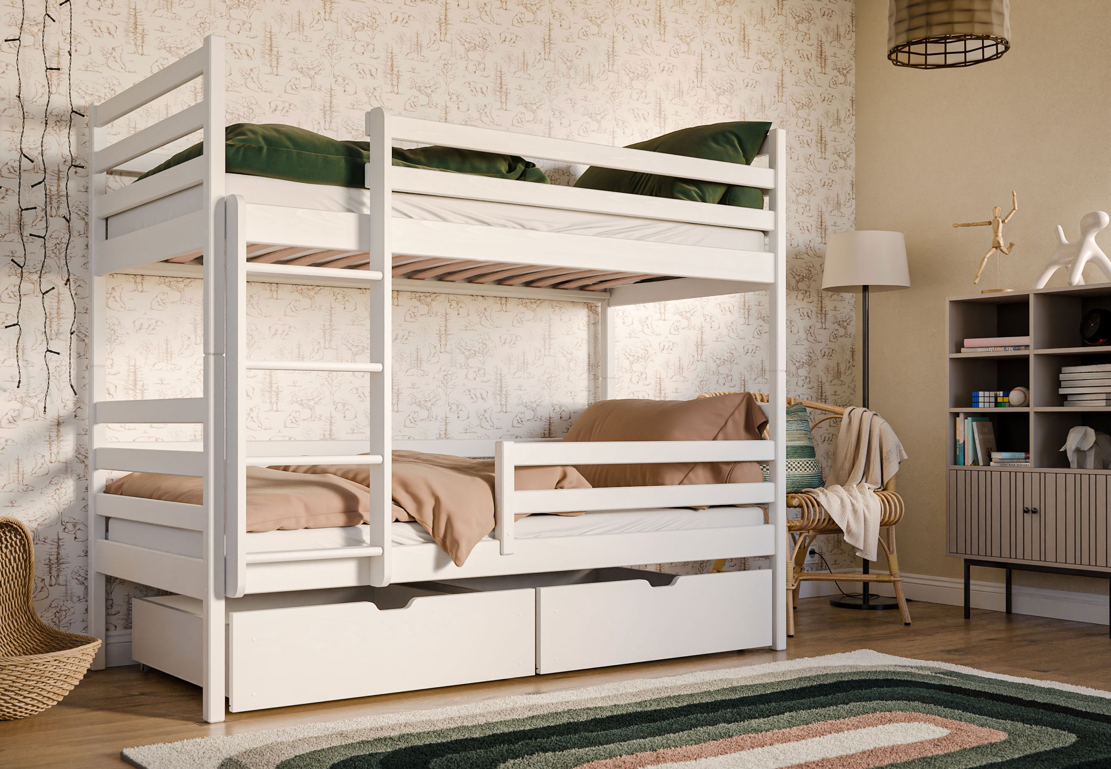 Etagenbett mir Rausfallschutz und zwei Schubladen