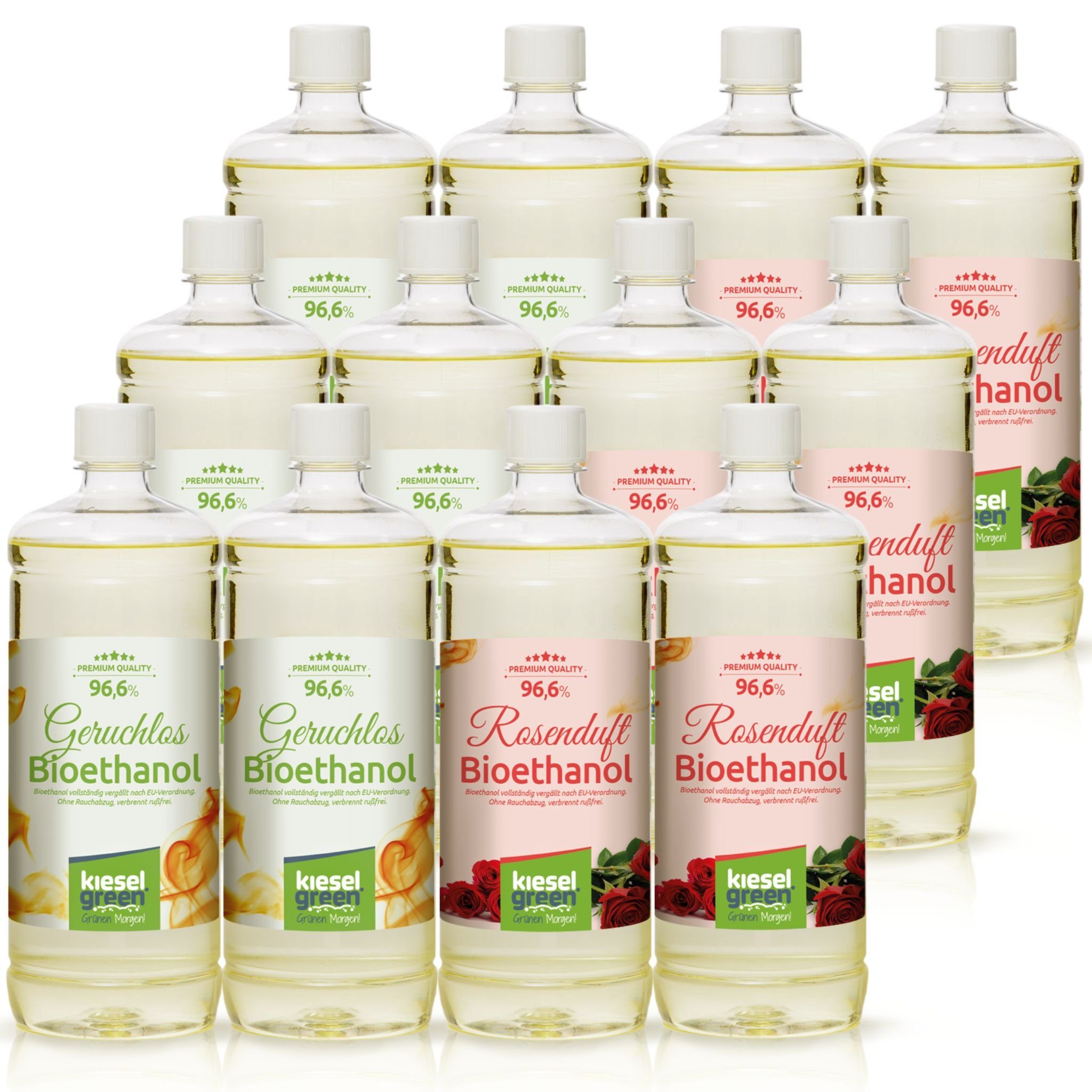 Das Premium Bioethanol mit Duftnote von KieselGreen ist für die Anwendung in Ethanol-Kaminen (auch Kunst-Kaminen) und Ethanol-Tischkaminen vorgesehen. Es verbrennt in Form einer schönen und warmen gelben Flamme und gibt dabei einen angenehmen Duft ab. Die durchschnittliche Verbrenndauer liegt bei 2-3 Stunden. Der Ethanolgehalt beträgt 96,6 %.