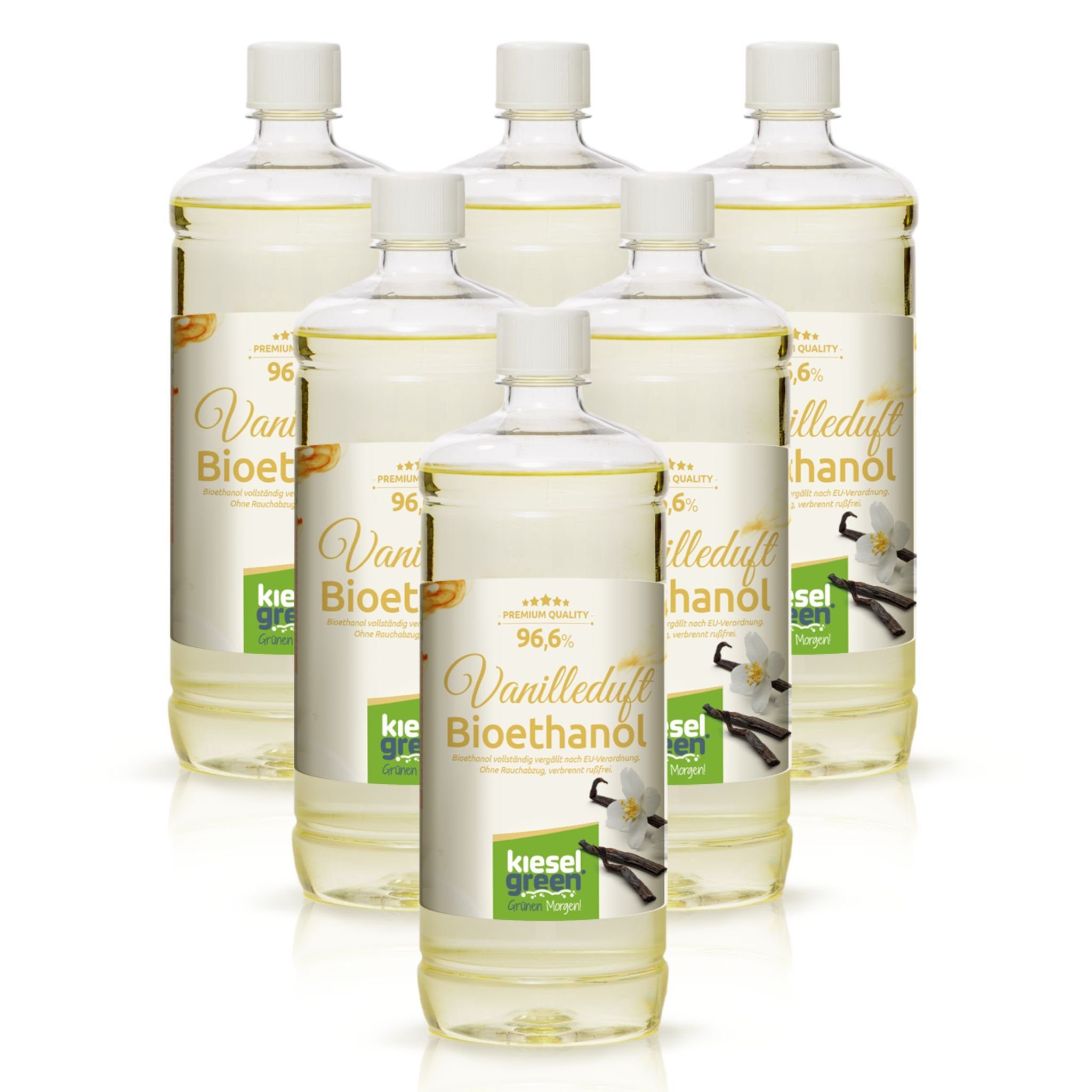 Das Premium Bioethanol mit Duftnote von KieselGreen ist für die Anwendung in Ethanol-Kaminen (auch Kunst-Kaminen) und Ethanol-Tischkaminen vorgesehen. Es verbrennt in Form einer schönen und warmen gelben Flamme und gibt dabei einen angenehmen Duft ab. Die durchschnittliche Verbrenndauer liegt bei 2-3 Stunden. Der Ethanolgehalt beträgt 96,6 %.