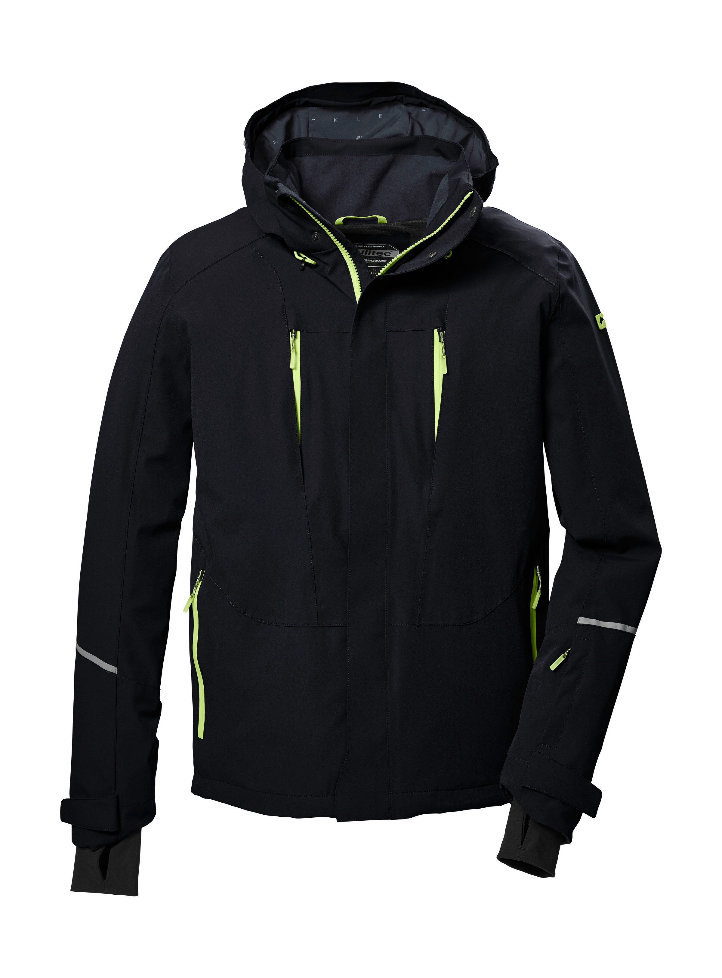 Herren Skijacke mit regulierbarer Kapuze und Schneefang10.000 mm Wassersäule, verschweißte Nähte, wasserdichtsehr atmungsaktiv, 10.000 g/m²/24h), Unterarmventilationwasserdichter Reißverschluss, diverse TaschenPFAs-freie Imprägnierung, gut für dich und die Umweltverstellbare Ärmelabschlüsse mit LycracuffsName: KOW 26 MN JCKTSaison: Herbst/WinterDie killtec Herren Skijacke mit Schneefang ist die perfekte Wahl für den nächsten Winterurlaub und überzeugt durch clevere Funktionalität. Die Jacke ist besonders atmungsaktiv mit einer Wasserdampfdurchlässigkeit von 10.000 g/m²/24 h. Zusätzlich sorgen Ventilationsöffnungen unter den Armen für ein angenehmes Körperklima. Zudem ist die Jacke mit einer 10.000 mm Wassersäule und durch verschweißte Nähte wasser- und winddicht (Unser Tipp: ab und zu sollte die Jacke neu imprägniert werden). Diverse Taschen bieten Platz für Skipass, Handy und Co. Die Kapuze und der Saum sind regulierbar. An den verstellbaren Armabschlüssen befinden sich Lycracuffs mit Daumenlöchern, die das Eindringen von Wind verhindern. Der wasserdichte, verdeckte Reißverschluss ist mit einem praktischen Kinnschutz versehen. killtec liegt es besonders am Herzen, die Kollektionen nachhaltiger und zukunftsfähiger zu machen. So setzt killtec verstärkt auf verantwortungsbewusstere Herstellungsverfahren. Diese Jacke wurde daher mit fluorfreien Mitteln imprägniert.