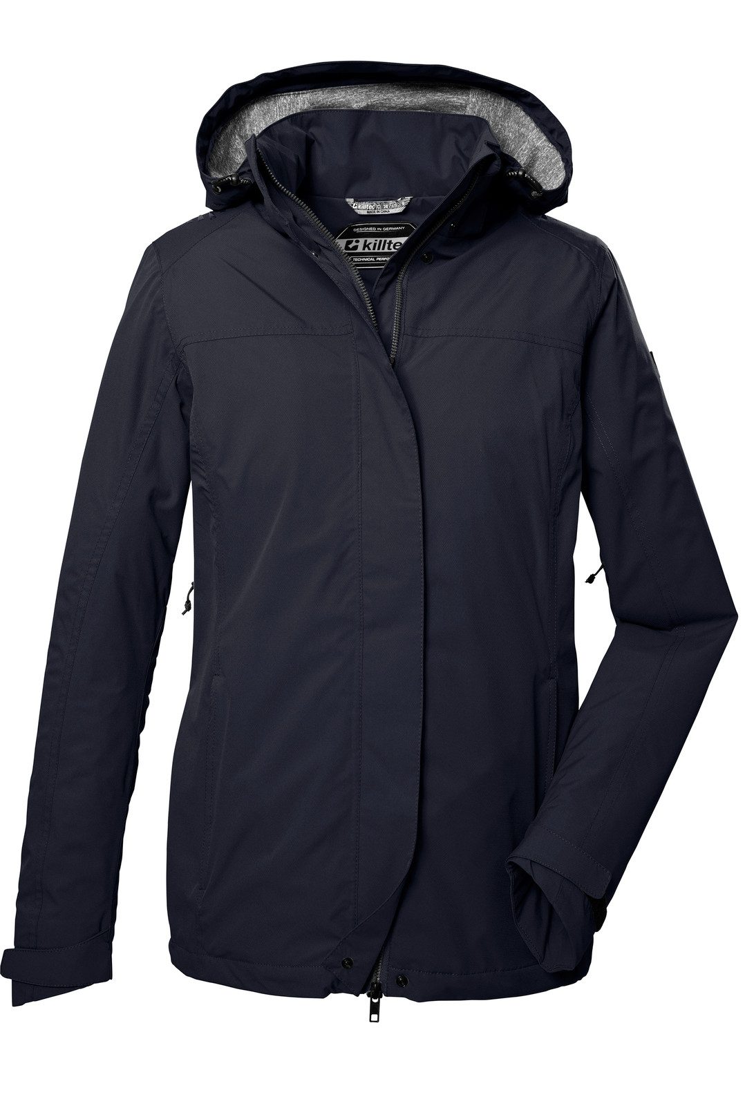 Die Damen Funktionsjacke von killtec ist ein echtes Multitalent. Sie hat verschweißte Nähte und ist 100% wasser- und winddicht mit einer 10.000 mm Wassersäule. Gleichzeitig ist sie atmungsaktiv mit einer Wasserdampfdurchlässigkeit von 10.000 g/m²/24 h. Zudem sorgen Ventilationsöffnungen für ein angenehmes Körperklima. Die Kapuze lässt sich verstellen und bei Bedarf abnehmen. Die Ärmelbündchen sind durch Klettverschlüsse verstellbar. Der Saum lässt sich mithilfe eines Kordelzuges regulieren. Zwei Zippertaschen und eine Innentasche bieten genügend Stauraum. Der Anti-Gliss-Print auf der Schulter sorgt dafür, dass Taschen nicht herunterrutschen. Der Reißverschluss ist mit einem Kinnschutz versehen. Die Jacke ist außerdem mit modisch reflektierenden Elementen ausgestattet. killtec liegt es besonders am Herzen, die Kollektionen nachhaltiger und zukunftsfähiger zu machen. So setzt killtec verstärkt auf verantwortungsbewusstere Herstellungsverfahren. Diese Jacke ist daher PFC-frei.