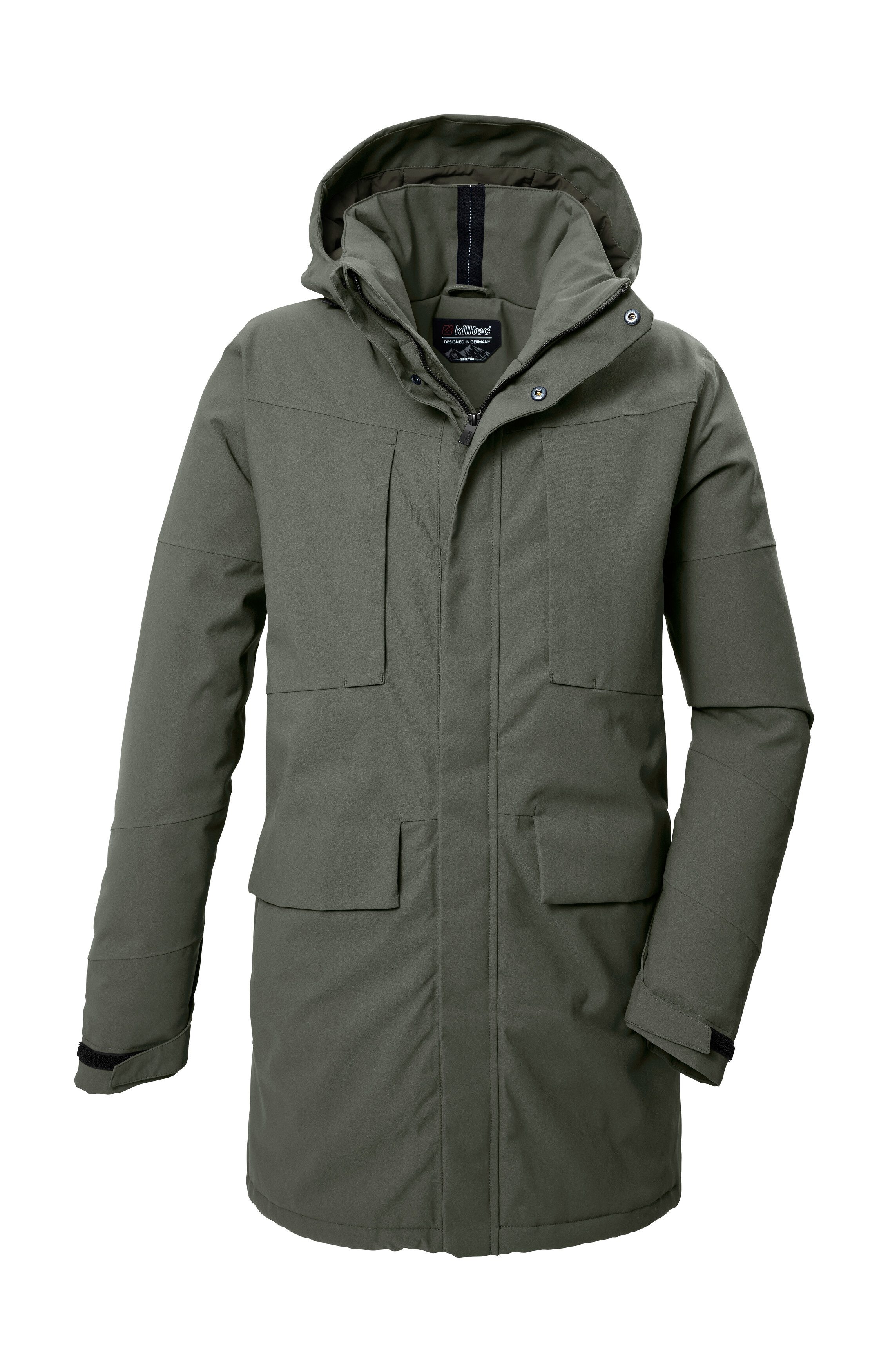 Der moderne und zugleich zeitlose Herren Funktionsparka von killtec ist optimal geeignet für die kalte Jahreszeit und lässt sich vielseitig kombinieren. Er ist durch verschweißte Nähte und mit einer 10.000 mm Wassersäule wasser- und winddicht (Unser Tipp: ab und zu sollte der Parka neu imprägniert werden). Gleichzeitig ist der Parka atmungsaktiv mit einer Wasserdampfdurchlässigkeit von 3.000 g/m²/24 h. Die Kapuze ist weiten- und längenregulierbar und lässt sich abzippen. Die Ärmelbündchen sind durch Klettverschlüsse verstellbar. Die zwei Seitentaschen, eine Brusttasche und zwei Innentaschen bieten ausreichend Stauraum. Der Kinnschutz am verdeckten Frontreißverschluss verhindert ein Einklemmen der Haut. Dieser Parka wurde mit fluorfreien Mitteln imprägniert und teilweise aus recyceltem Material hergestellt.