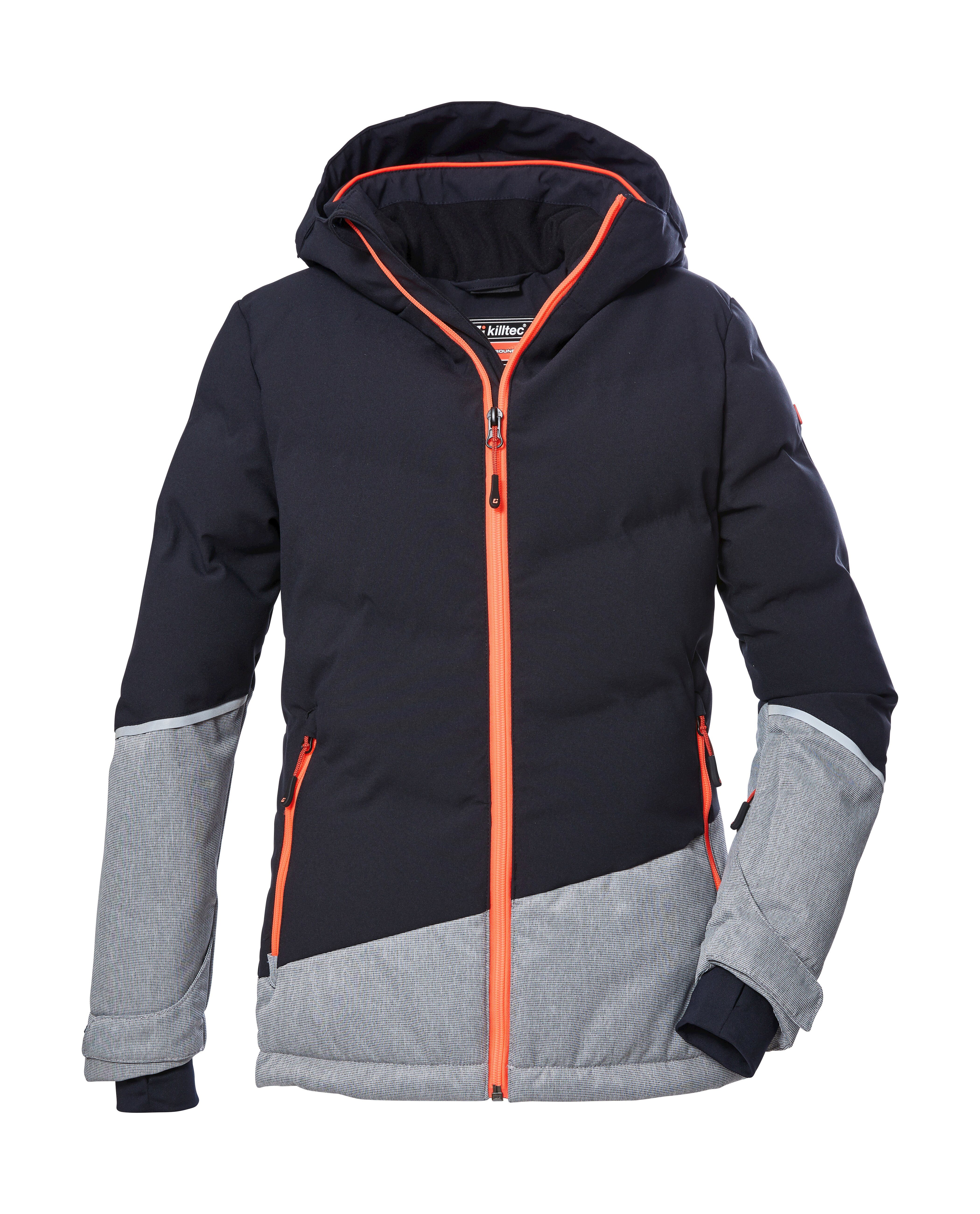 Die killtec Winterjacke in Steppoptik und im angesagten Colourblock Design mit refektierenden Elementen kombiniert Pistentauglichkeit mit Citystyle. Sie ist wasserabweisend, winddicht und atmungsaktiv (10.000 mm, 3.000 g/m²/24 h). Das Fleece-Futter und der temperaturregulierende Mesh-Einsatz im Inneren versprechen ein angenehmes Körperklima. Die verstellbare Kapuze mit Gummizug und Schirm ist mit Fleece gefüttert und lässt sich regulieren. Lycracuffs an den verstellbaren Ärmelbündchen und der rutschfeste Schneefang verhindern das Eindringen von Wind und Kälte. Zahlreiche Taschen bieten genügend Stauraum für alle wichtigen Dinge wie Handy, Skipass und Co. Durch einen Kordelzug lässt sich die Weite des Saumes verstellen. Diese Jacke wurde daher mit fluorfreien Mitteln imprägniert.