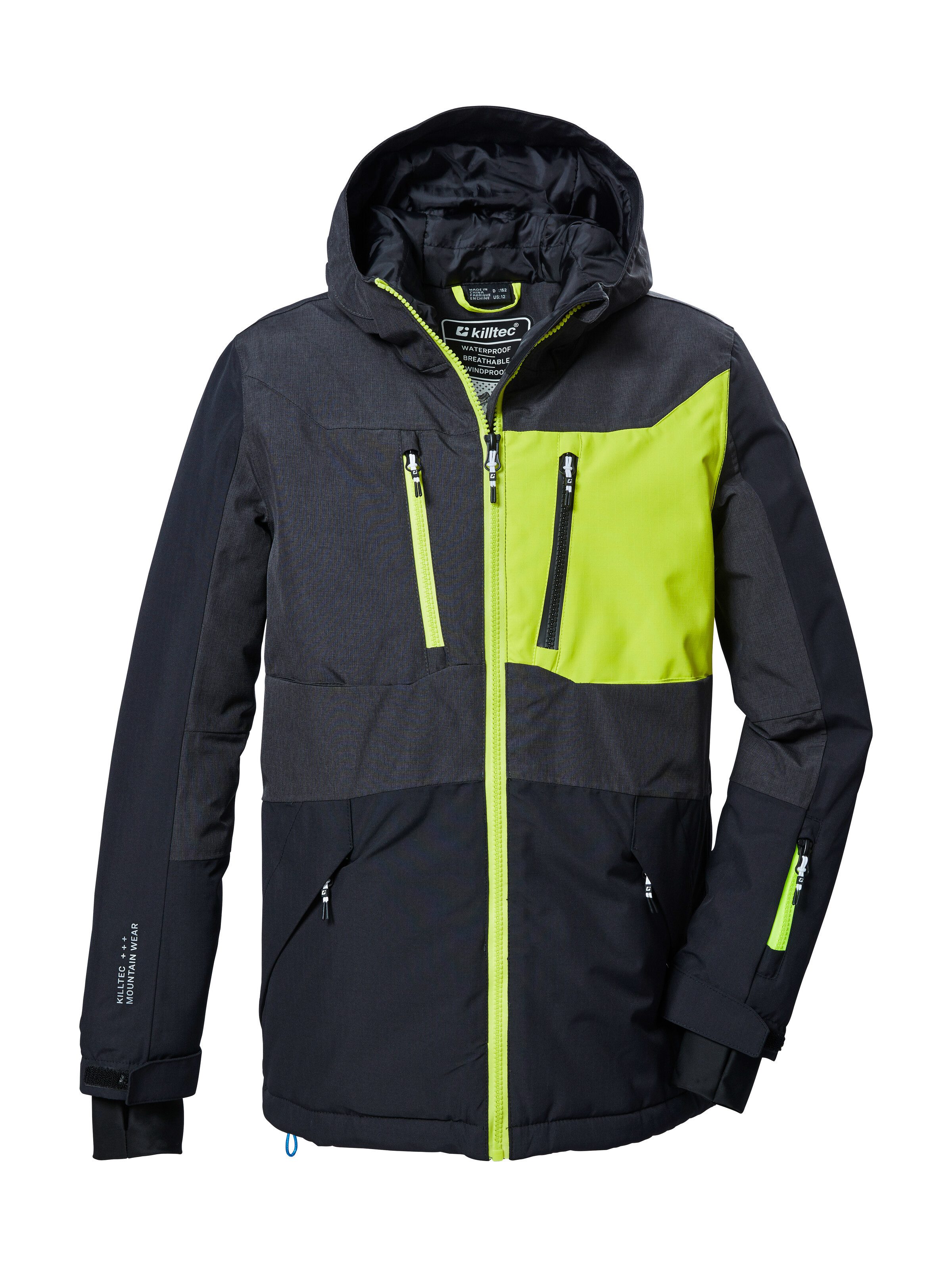Die Jungen Skijacke von killtec vereint Stil und Funktionalität. Das atmungsaktive PU-Laminat gewährleistet durch die verschweißten Nähte und einer Wassersäule von 10.000 mm absolute Wasserdichtigkeit. Gleichzeitig ist die Jacke atmungsaktiv mit einer Wasserdampfdurchlässigkeit von 3.000 g/m²/24 h. Die Lycracuffs mit Daumenlöchern und die verstellbaren Ärmelbündchen bieten optimalen Tragekomfort. Praktische Details wie die regulierbare Kapuze, der Schneefang mit rutschfester Gummierung und die vielen Taschen machen diese Jacke zu einem perfekten Begleiter bei Outdooraktivitäten und auf der Skipiste. Das Innenfutter und der Mesh-Einsatz sorgen für zusätzlichen Komfort. Das Colourblock-Design verleiht der Jacke eine trendige Note. Diese Jacke wurde mit fluorfreien Mitteln imprägniert.