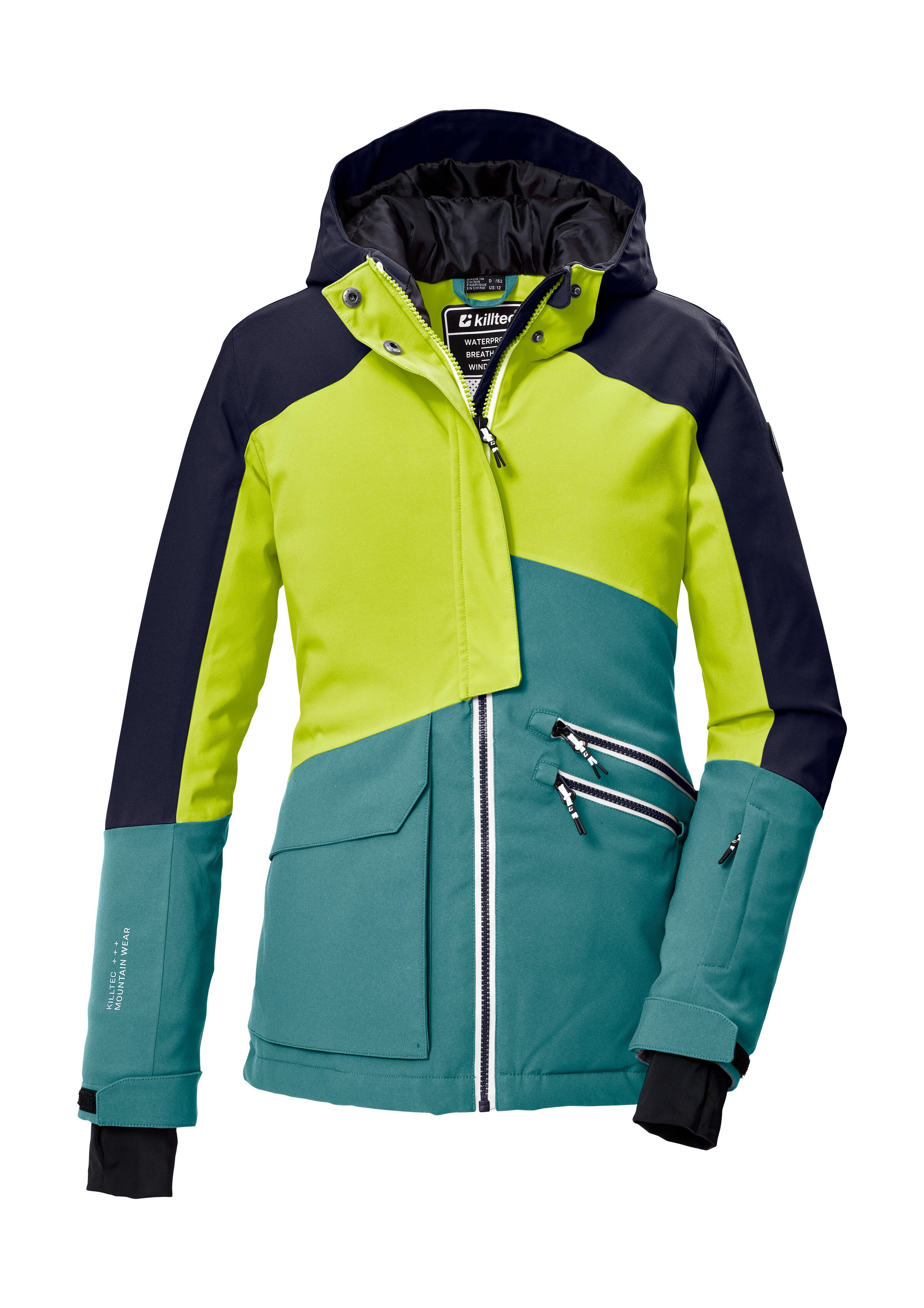 Die Mädchen Funktionsjacke mit Kapuze und Schneefang von killtec vereint Stil und Performance. Ihr atmungsaktives PU-Laminat sorgt für eine Wasserdampfdurchlässigkeit von 3.000 g/m²/24 h, während die Wassersäule von 10.000 mm und die verschweißten Nähte für Wasserdichtigkeit sorgen. Die Jacke überzeugt mit Lycracuffs und Daumenlöchern, sowie verstellbaren Ärmelbündchen für individuellen Tragekomfort. Die atmungsaktiven Eigenschaften sorgen für ein angenehmes Klima, unterstützt durch Mesh-Einsätze und ein angenehmes Innenfutter. Mit dem trendigen Colourblock-Design und einer optimalen Passform ist die Jacke nicht nur funktional, sondern auch stylisch. Der Kinnschutz am Reißverschluss, der Saum mit Kordelzug zur Weitenregulierung und die praktische Innentasche unterstreichen die durchdachten Details. Die Skipasstasche und die Vordertasche bieten zusätzlichen Stauraum.