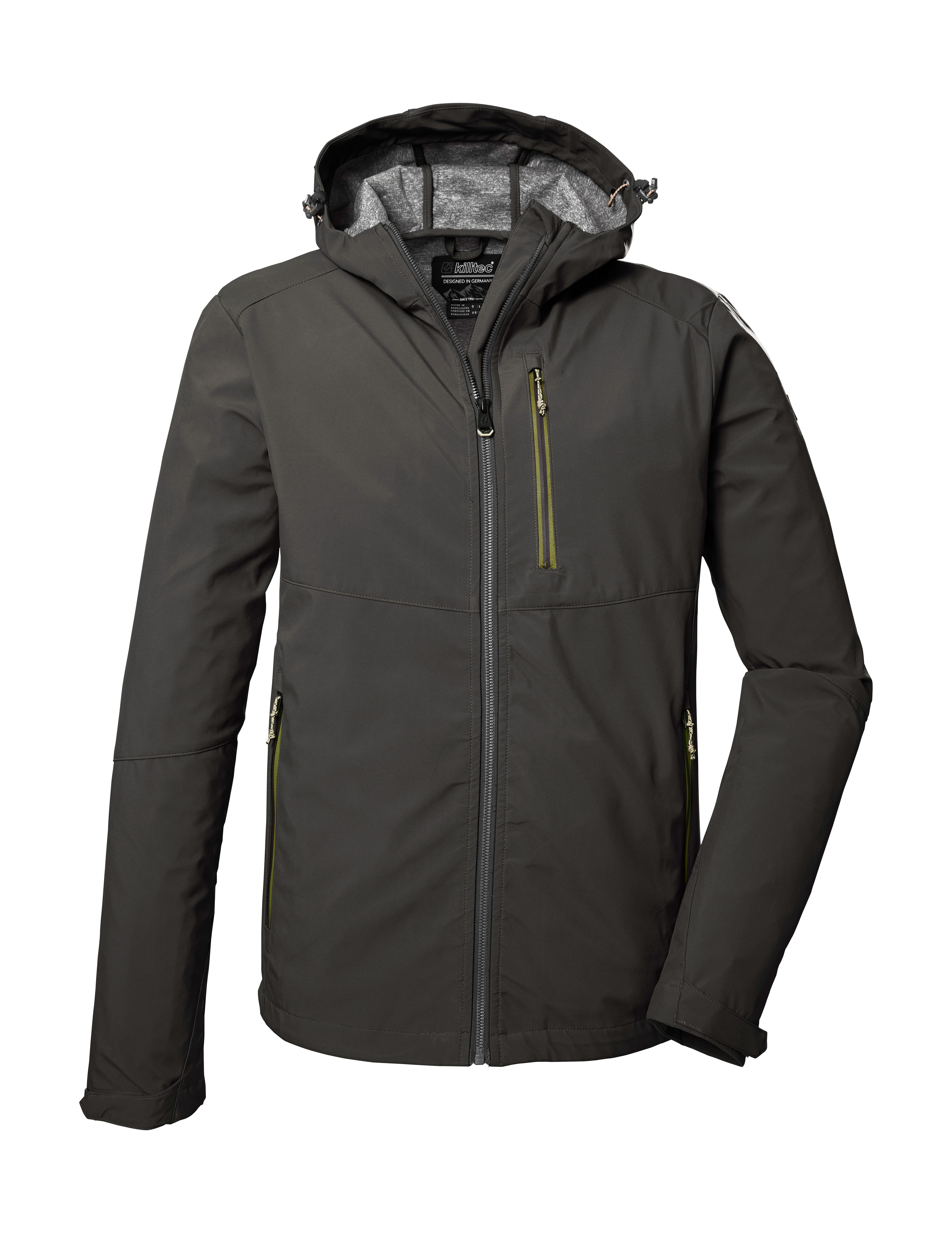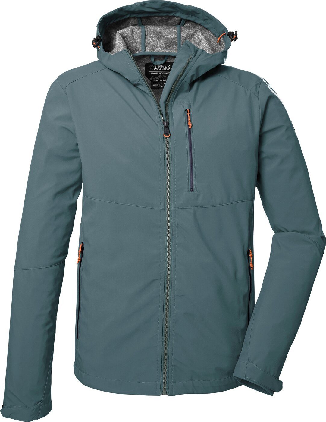 Herren Softshelljacke mit regulierbarer Kapuzewind- und wasserabweisend, Wassersäule 10.000 mmTaschen mit Zippern, Frontreißverschluss mit KinnschutzÄrmelbündchen und Saum verstellbarPFAS-freie Imprägnierung, teilweise recyceltes MaterialName: KOS 259 MN SFTSHLL JCKTSaison: Frühjahr/SommerDie Herren Softshelljacke mit regulierbarer Kapuze von killtec ist der perfekte Begleiter bei Wind und Wetter. Mit einer 10.000 mm Wassersäule und dem atmungsaktiven Laminat ist die Jacke wasser- und windabweisend. Die Seitentaschen sowie die Brusttasche sind mit Zippern verschließbar. Die Ärmelbündchen sind durch Klettverschlüsse verstellbar. Der Kinnschutz am Frontreißverschluss verhindert ein Einklemmen der Haut. killtec liegt es besonders am Herzen, die Kollektionen nachhaltiger und zukunftsfähiger zu machen. So setzt killtec verstärkt auf verantwortungsbewusstere Herstellungsverfahren. Diese Jacke wurde daher PFAS-frei imprägniert und teilweise aus recyceltem Material hergestellt.