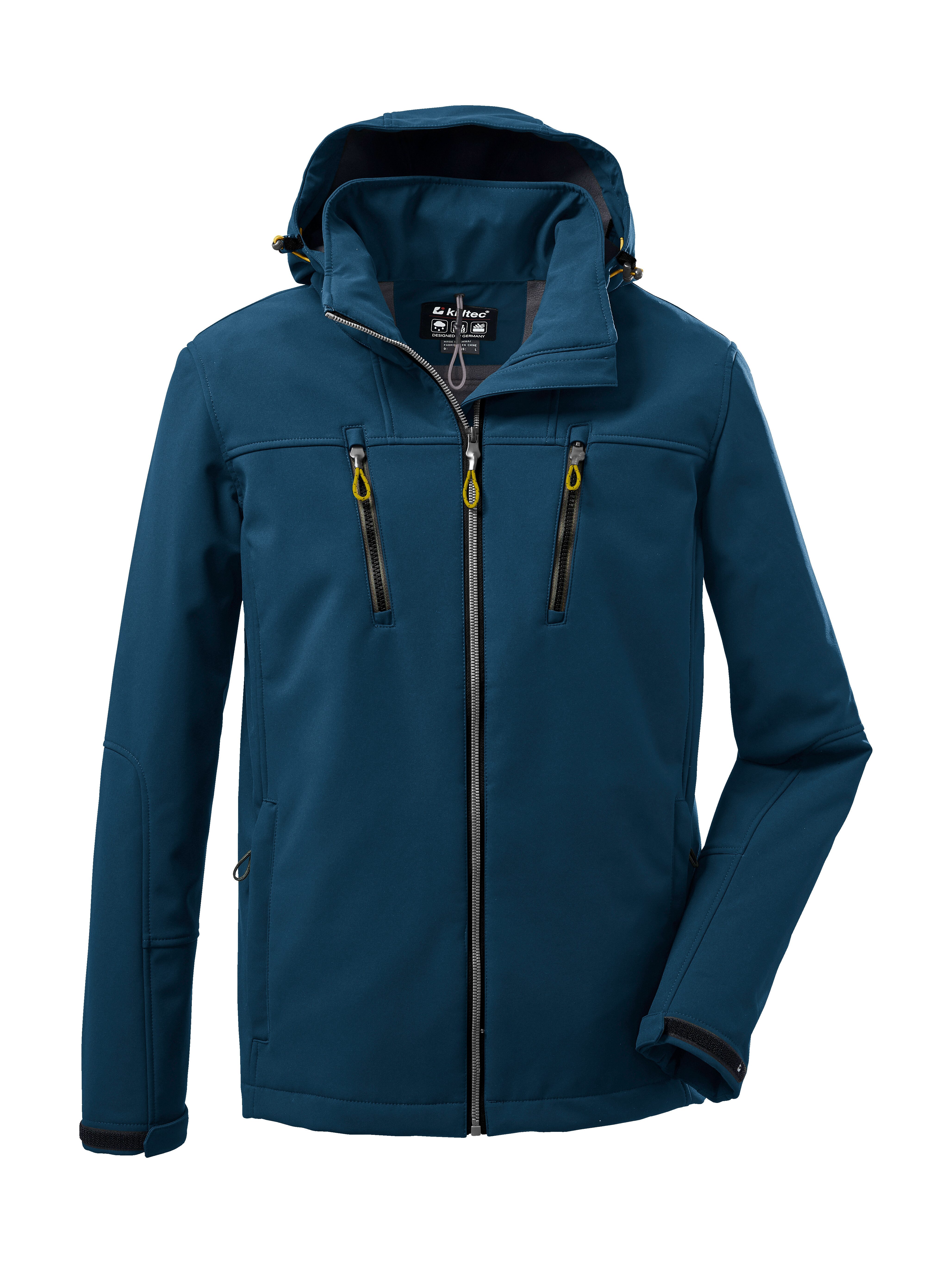 Besondere Merkmale | Wasserdichte Softshelljacke, abnehmbare Kapuze, Fleece-Futter |