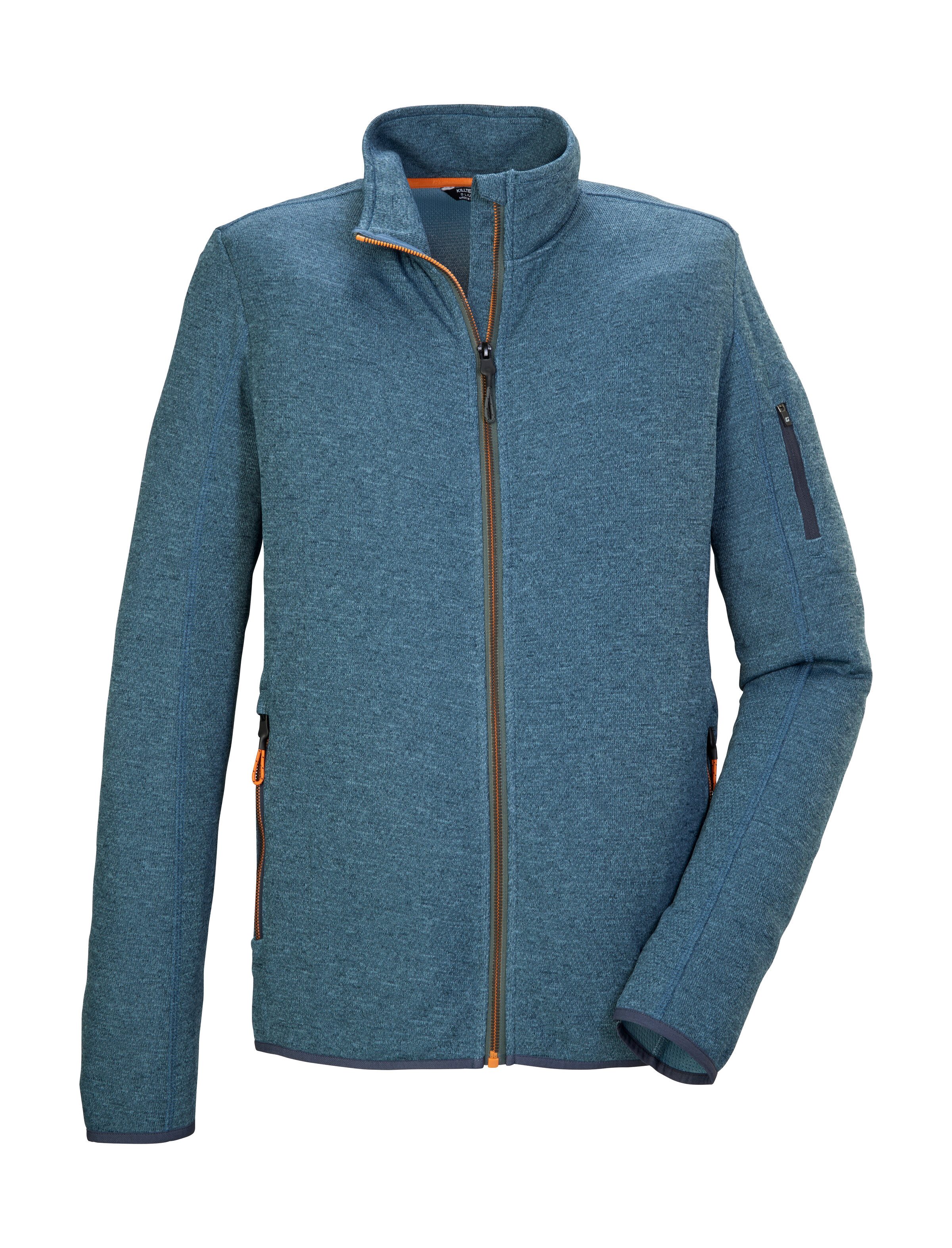 Besondere Merkmale | Melange-Optik, Kinnschutz, verschließbare Taschen, Stretchkomfort |