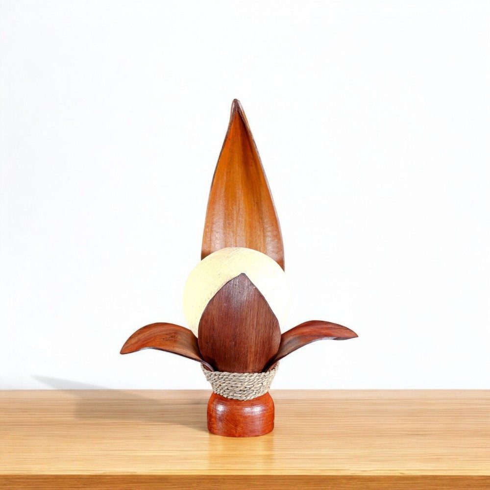 Diese naturgeformten Rispen wurden zu einer sich öffnenden Blüte arrangiert. Im Inneren befindet sich die Lampenfassung, die von einem beigen Rattan-Ball umhüllt wird. Das warme Licht scheint sanft durch das Rattangeflecht und sorgt für eine gemütliche, exotisch inspirierte Atmosphäre – ideal für Wohnzimmer, Schlafzimmer oder als besonderer Akzent in Ihrer Leseecke.
