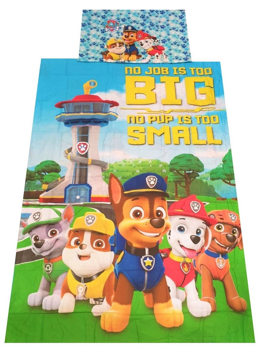 Paw Patrol Fans, aufgepasst! Es gibt jetzt die wunderschöne Bettwäsche mit den coolen Charakteren aus der Kinderserie. Zu sehen sind die Hunde Rocky, Rubble, Chase, Marshall und Zuma. Im Hintergrund ist die Zentrale zu sehen. Als Motto ist zu lesen "No Job ist too big - No Pup is too small", den es gilt immer "Kein Einstatz zu groß, keine Pfote zu klein - Paw Patrol helfen immer". Besonders die kräftigen Farben der Bettwäsche macht sie in jeden Kinderzimmer zum Hingucker. So wird aus einem langweiligen Bett ein Rückzugsort. Das leichte Material von Bettdecke und Kopfkissen ist angenehm kuschelig und weich, so dass die Kids sich wunderbar einkuscheln können. Dieses Bettwäsche-Set ist ein absolutes Muss für kleine Fans der TV-Serie. Das Set besteht aus einem Kopfkissen-Bezug 70 x 90 cm und einem Decken-Bezug 140 x 200 cm. Pflegehinweis: Vor dem ersten Gebrauch waschen, auf Links drehen. Dunkle Farben separat waschen. Bei 40°C waschbar, für den Trockner geeignet! Material: 100% Baumwolle