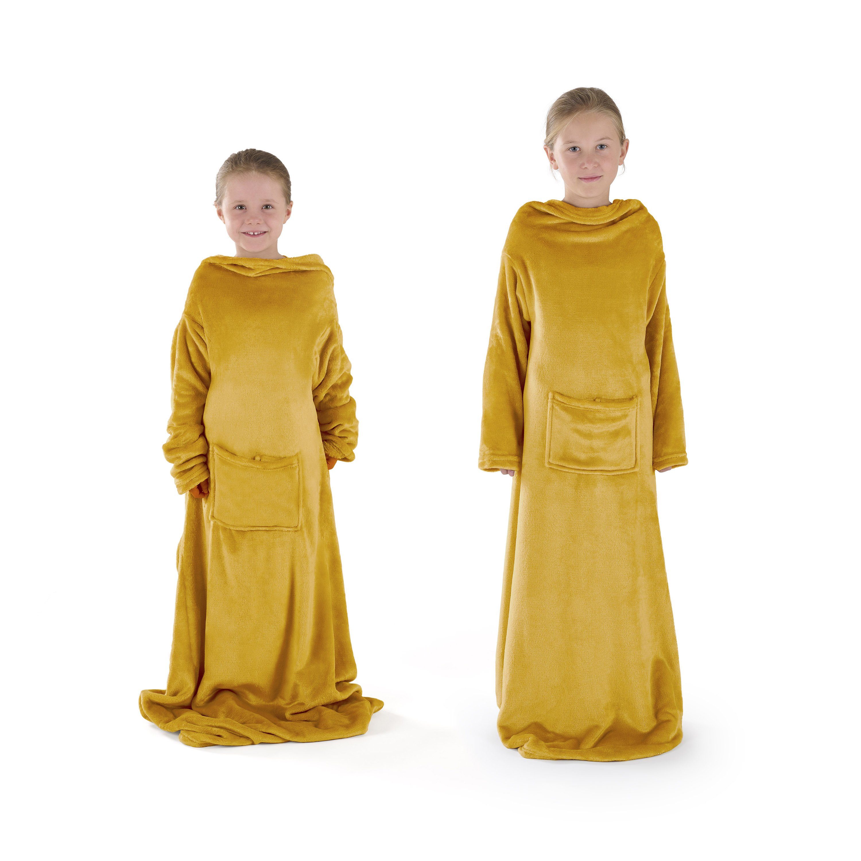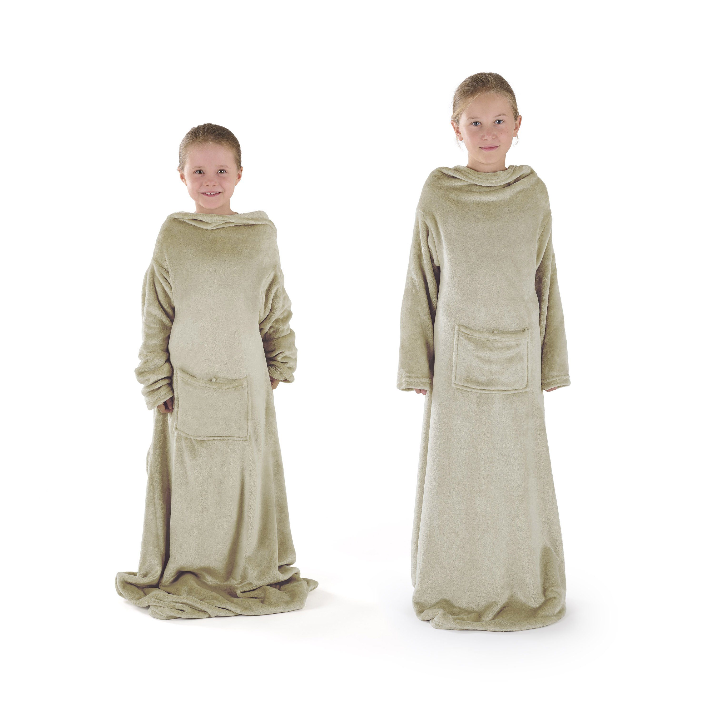 WARME DECKE MIT FUßSACK IN 2 GRÖßEN: Kuscheldecke mit Ärmeln & Fußsack. Für Erwachsene (170x200 cm) und Kinder (90x105 cm). Rundum warm & gemütlich.