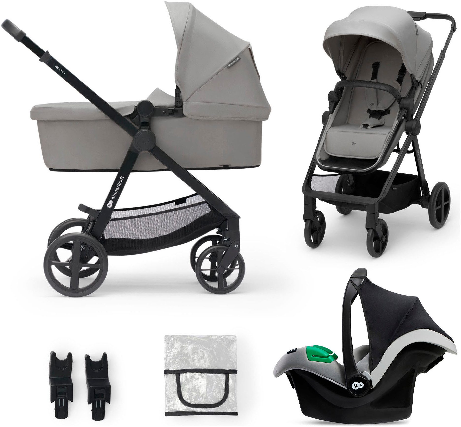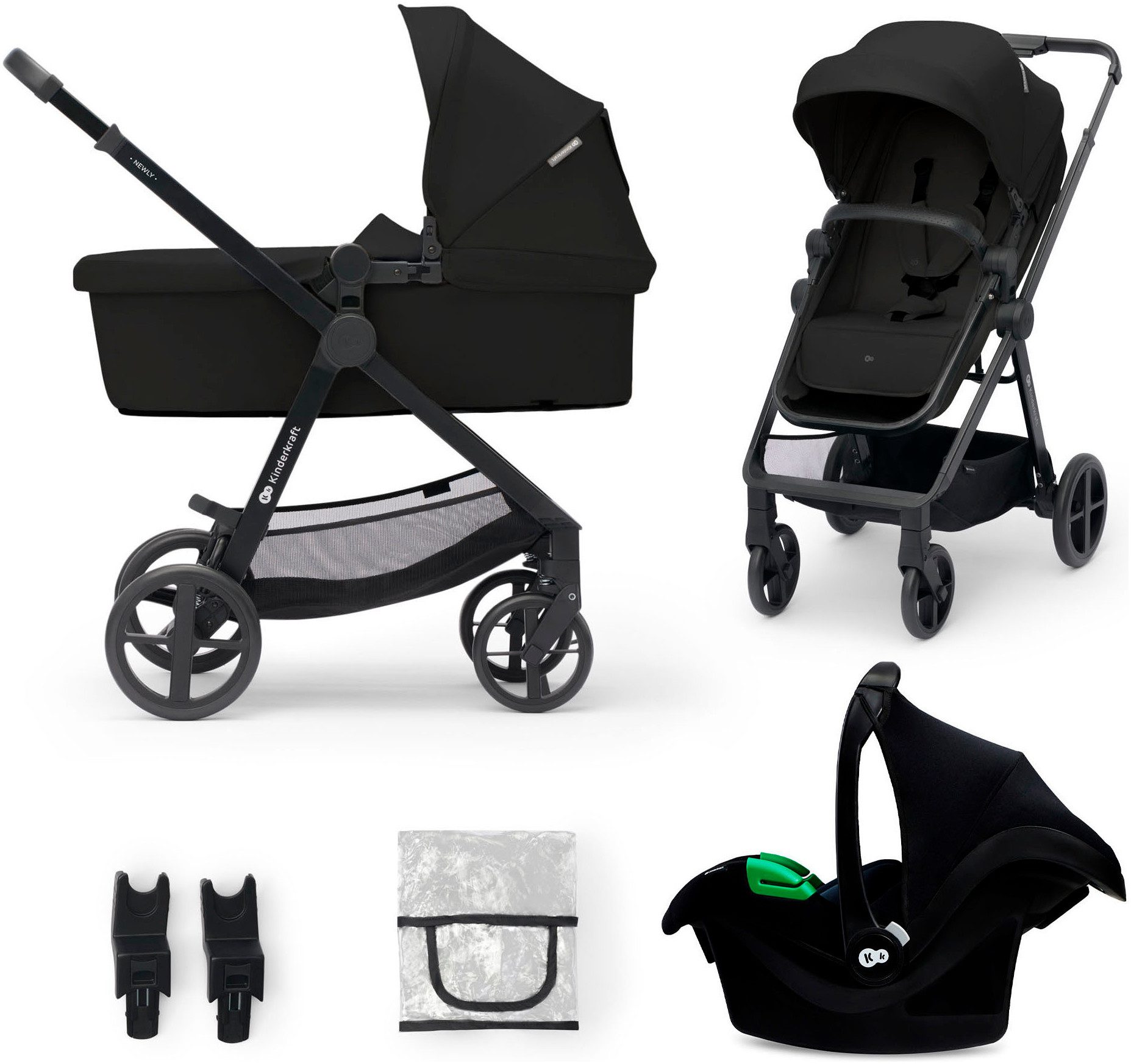 Lieferumfang | Babyschale für 0-13 kg Fußsack Kinderwagen Regenschutz Universaladapter |