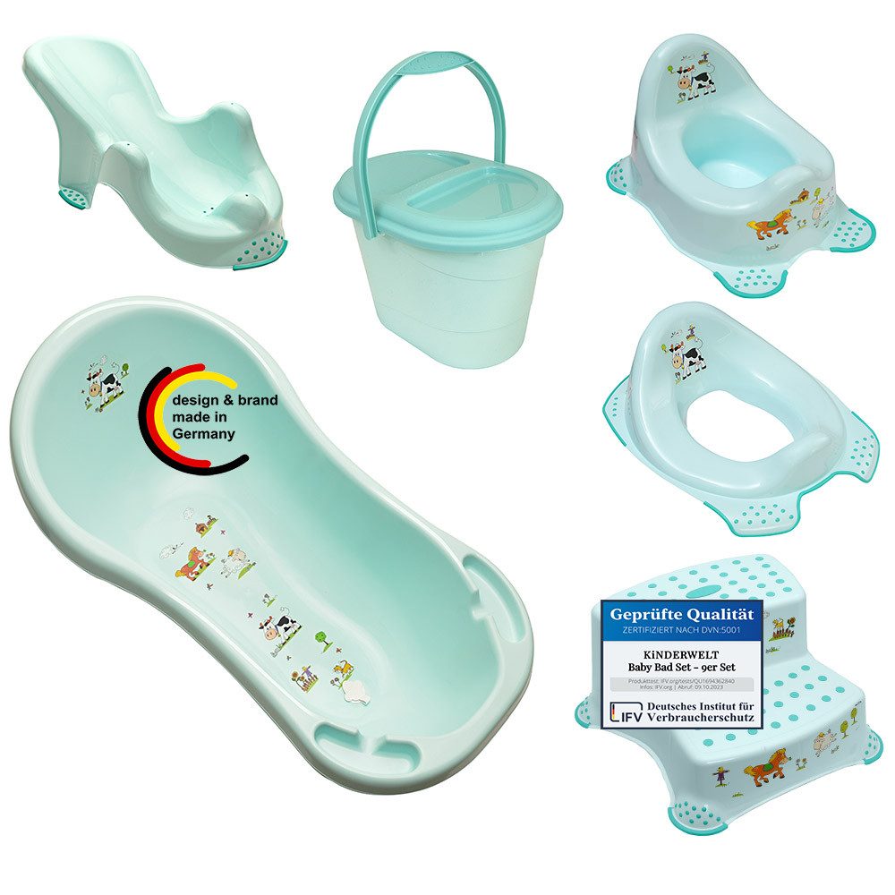 6er Set für ihr Kind: Topf + WC Aufsatz + Hocker + Babywanne 100 cm mit Abfluss Stöpsel + Windeleimer + Badesitz.