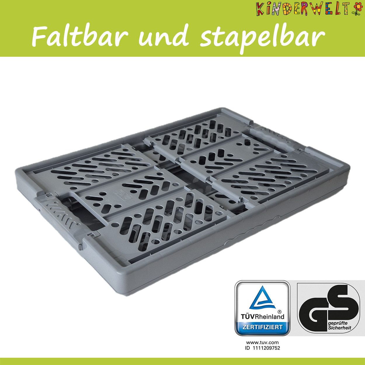 Lieferumfang: 1 Klappbox , Maße (LxBxH): 54 x 36 x 28 cm, Fassungsvermögen: 45 l, Gewicht: 1,3 kg, grau.