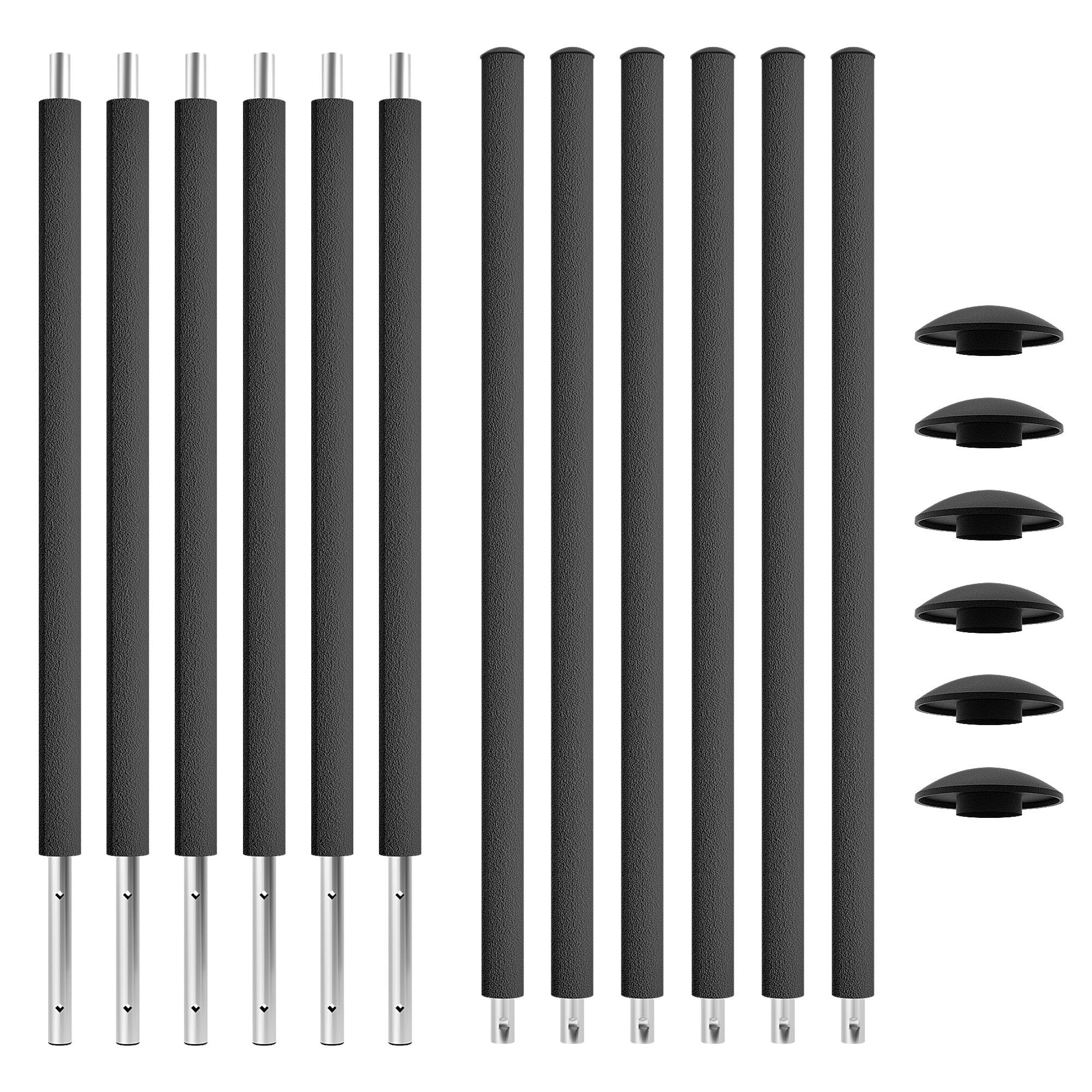 Lieferumfang 12 x Trampolin Netzstange, bestehend aus 6 x obere und 6 x untere Stangen 12 x Schaumstoffpolster 6 x Abdeckkappen