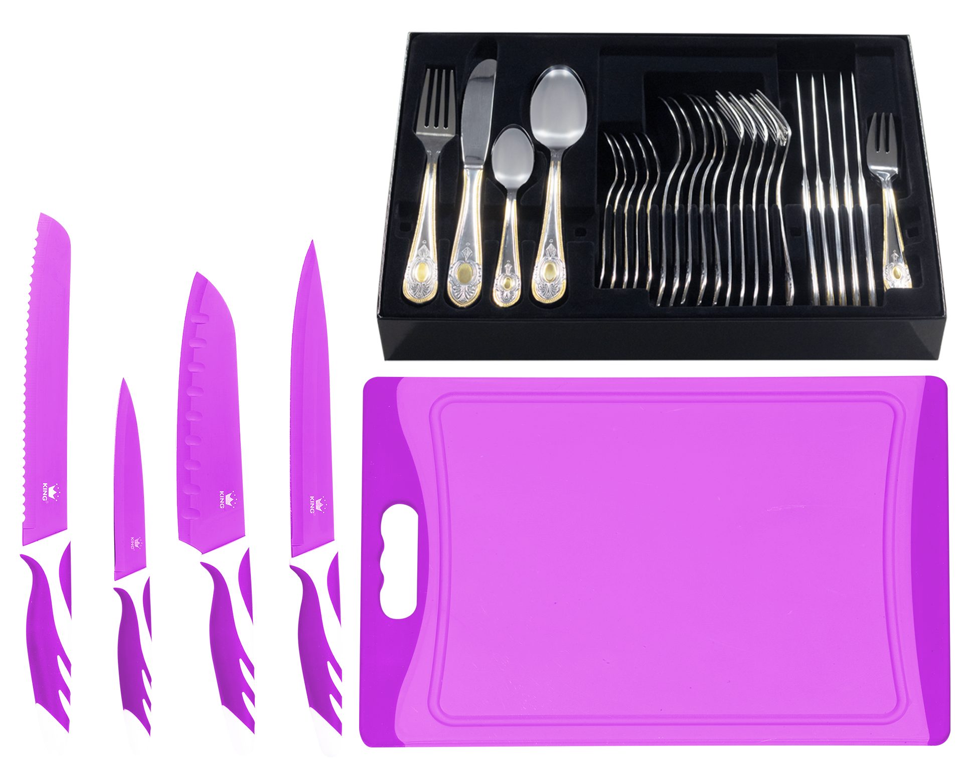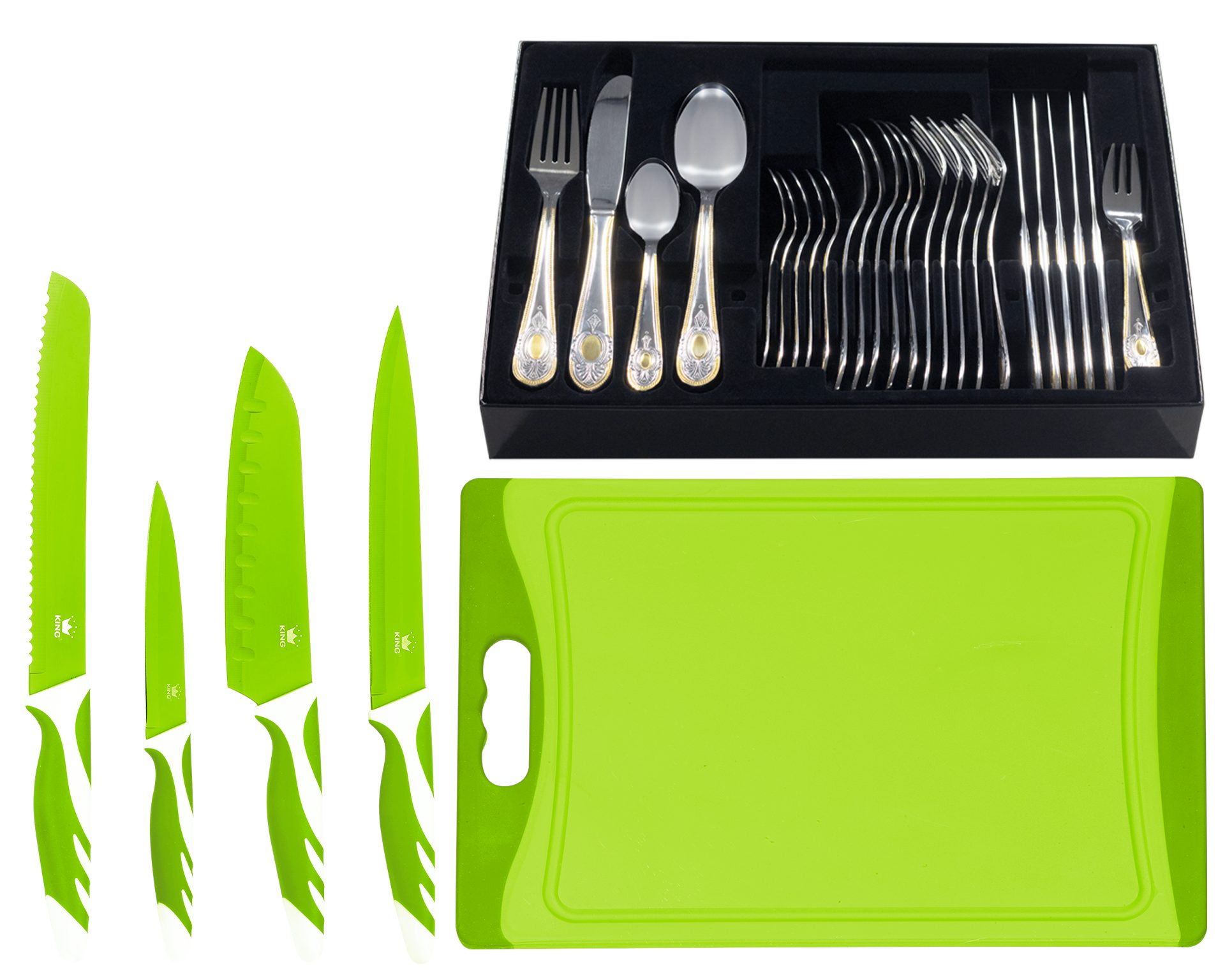 Die Messerklingen der Küchenmesser sind antihaftbeschichtet. Hierdurch bleibt beim Schneiden weniger haften. Die Messergriffe sind ergonomisch geformt und mit einer Soft-Grip-Oberfläche ausgestattet. Hierdurch liegen sie beim Schneiden ausgezeichnet in der Hand und sind sehr rutschfest.