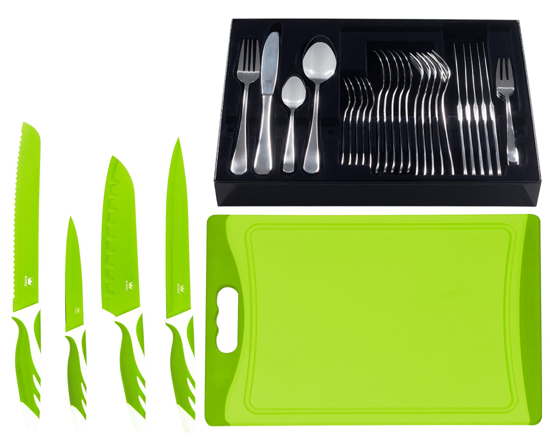 Die Messerklingen der Küchenmesser sind antihaftbeschichtet. Hierdurch bleibt beim Schneiden weniger haften. Die Messergriffe sind ergonomisch geformt und mit einer Soft-Grip-Oberfläche ausgestattet. Hierdurch liegen sie beim Schneiden ausgezeichnet in der Hand und sind sehr rutschfest.