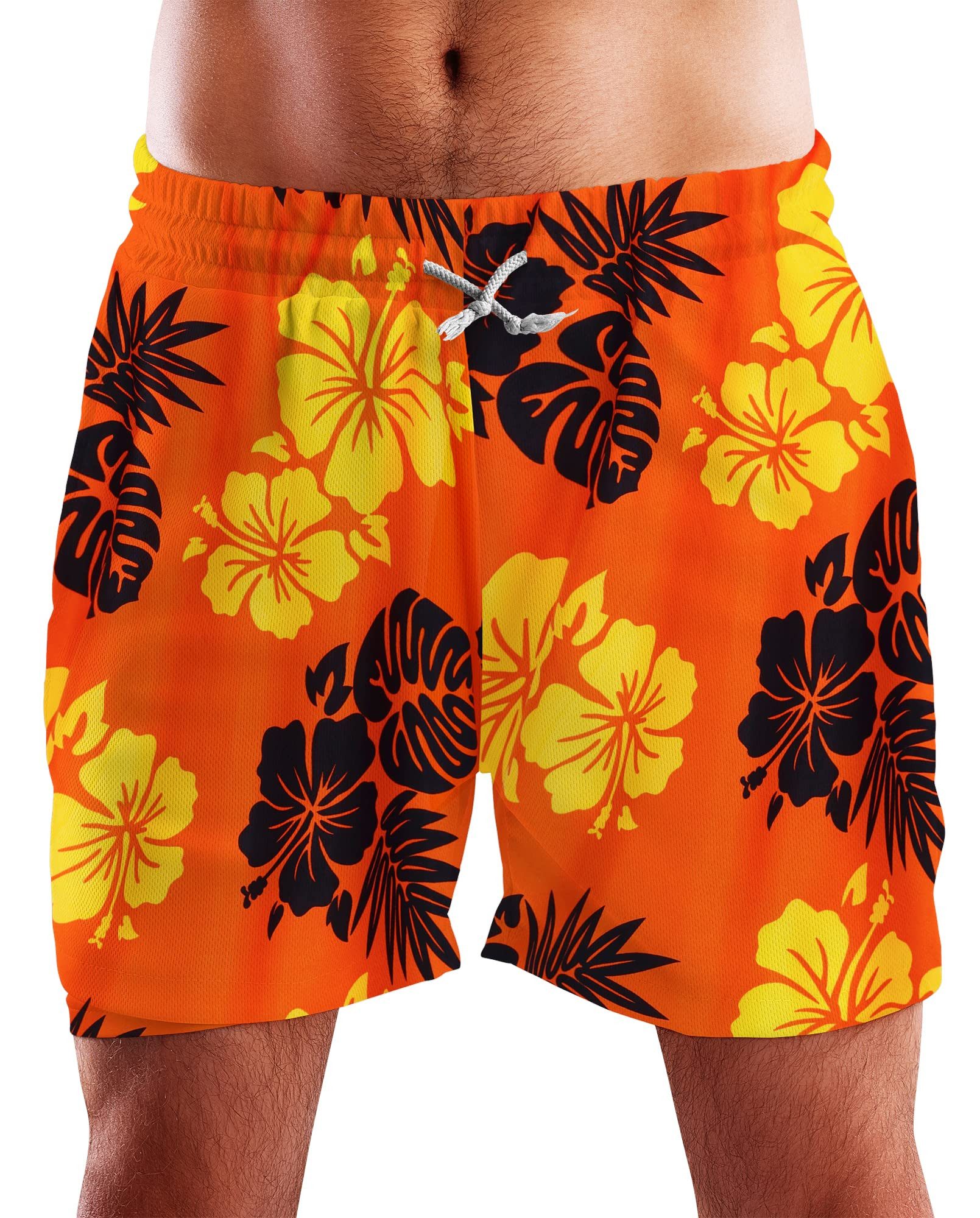 Badeshorts Mono Hibiscus Hawaii Bade-Shorts Mesh-Einsatz Verschluss Kordelzug