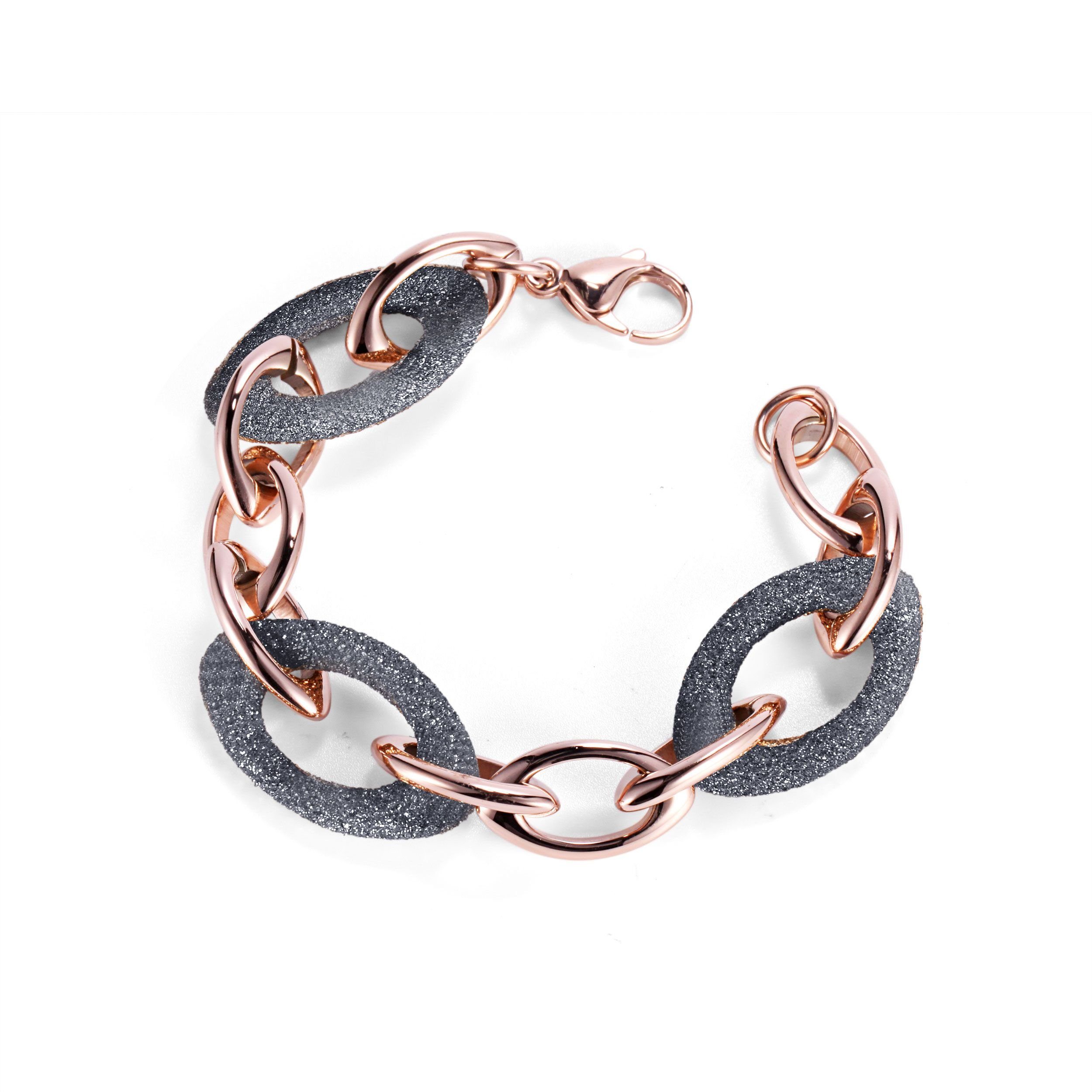 Edelstahl Armband Длина 21 + 5 cm Verlängerungskette Breite 2 2 cm roségoldfarben mit grauer Mineralisierung KarabinerverschlussDieses massiv verarbeitete Damenaccessoire zieht alle Blicke auf sich. Mit seiner teilweise Mineralbeschichtung und der IP Beschichtung liegt das Armband im neusten Trend. Es ist Verstellbar durch die 5 cm Verlängerung mit Karabinerverschluss. Der edle Schmuck für die Frau von heute.