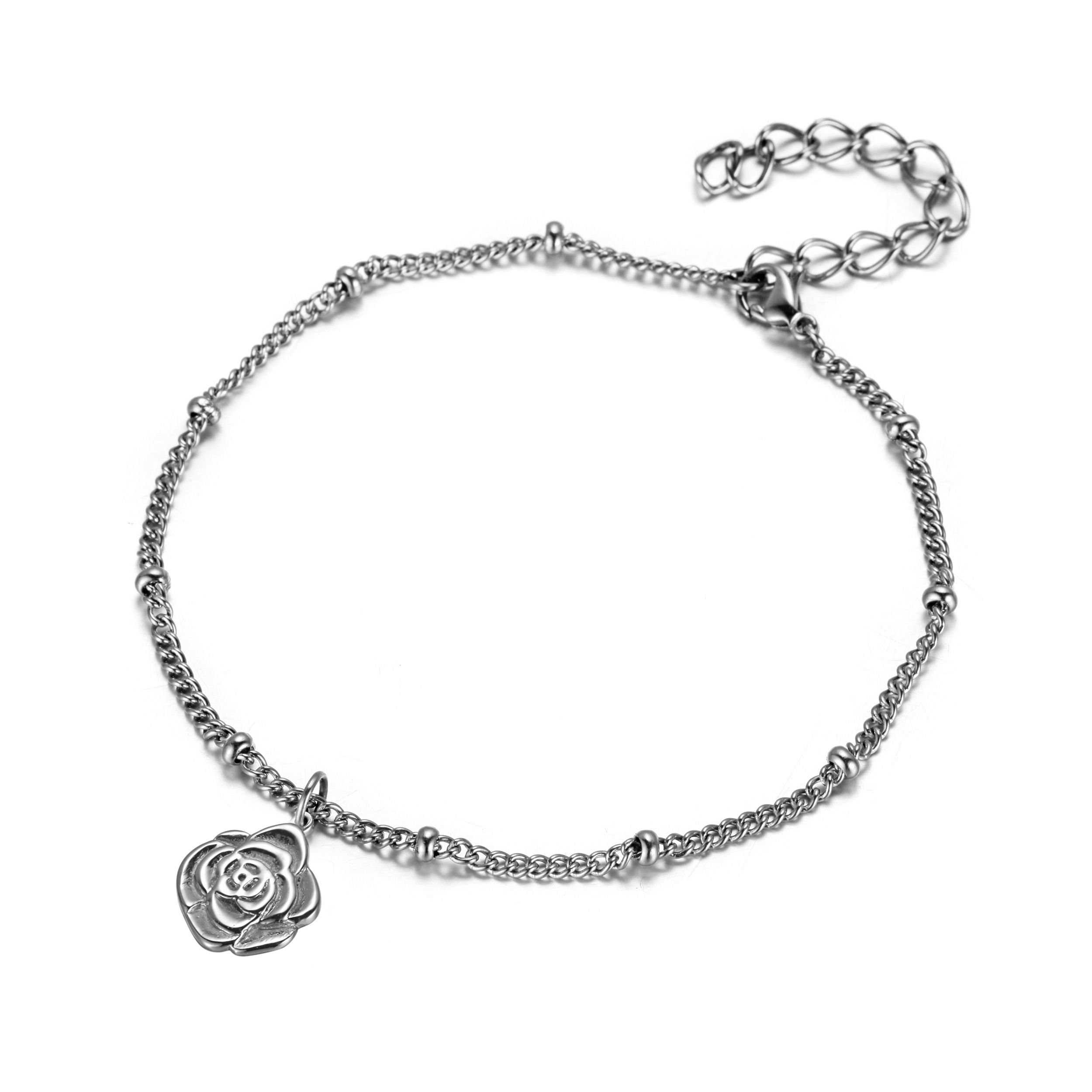 Kingka Fußkette "Rose" Edelstahl 316 glänzend Panzerkette mit 10 Kugelelementen (Ø 3 5 mm) Длина ca. 22 cm + 5 cm Breite ca. 2 1 mm Anhänger 23 5 mm lang 16 mm breit