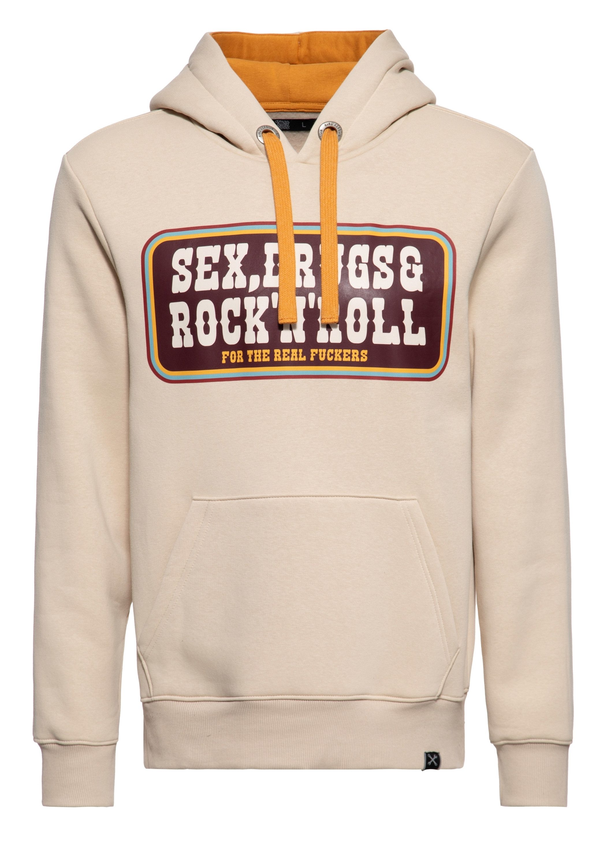 Manchmal braucht es nur einen Hoodie, um das Statement zu setzen. Mit dem King Kerosin Hoodie im "Sex, Drugs & Rock'n'Roll" Design ziehst du alle Blicke auf dich. Der lässige Print auf der Vorderseite macht klar: Du lebst das Leben nach deinen eigenen Regeln! Die gemütliche Kapuze mit kontrastfarbenem Innenfutter und den dazu passenden Kordeln gibt dem Hoodie das gewisse Etwas. Ein besonderes Highlight ist der freche Schriftzug auf der Rückseite, der den rebellischen Spirit unterstreicht. "With All Due Respect" – für alle, die genau wissen, was sie wollen und sich nicht um Konventionen scheren. Die elastischen Bündchen und der Saum sorgen für einen perfekten Sitz, während die angeraute Innenseite aus Baumwollmischung ein unschlagbar weiches Tragegefühl bietet. Praktische Kängurutaschen bieten Platz für deine Essentials oder um deine Hände zu wärmen. Ob auf der Straße, im Club oder beim Chillen – dieser Hoodie ist dein idealer Begleiter für jede Gelegenheit. Also, worauf wartest du? Zeige der Welt deinen Stil und genieße die Aufmerksamkeit, die dir sicher sein wird!