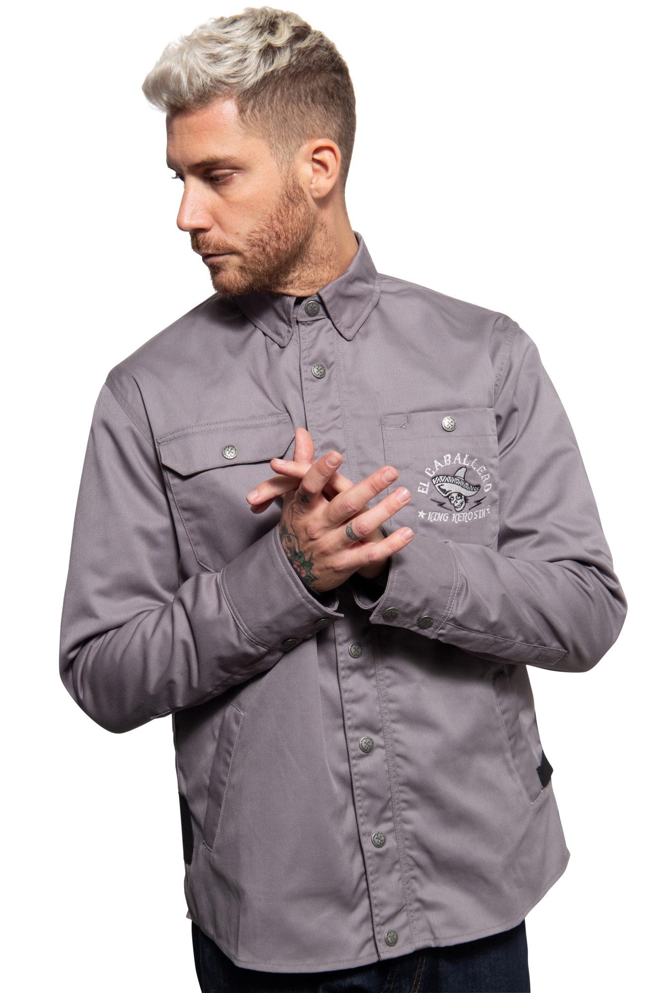 Du kannst Dich nicht entscheiden welche Jacke zu deinem Hemd passt? Darüber brauchst Du dir mit dem Funktionshemd von King Kerosin keine Gedanken mehr machen, denn mit dem separaten Softshell-Innenfutter kann das Hemd ganz leicht auch zur Jacke aufgerüstet werden. Das Obermaterial besteht aus reiner Baumwolle, was zusammen mit dem bequemen Straight Fit für großartigen Komfort sorgt. Eine hochwertige Stickerei im Rücken und auf einer der Brusttaschen, sowie der legere Inside Oil Wash erweisen sich als echter Blickfang. Das Hemd verfügt über einen klassischen Kragen, praktische Reißverschlusstaschen und Manschetten mit Ärmelschlitzen, die mit einem Reißverschluss geschlossen werden können. Auch die vordere Mitte verfügt über einem Reißverschluss, der durch die Knopfblende mit Druckknöpfen verdeckt wird. Funktionalität steht hier großgeschrieben, denn das langarm Funktionshemd von King Kerosin verfügt über ein separates Innenfutter mit Innentaschen aus wasser- und windabweisendem Softshell, das ja nach Bedarf komplett per Reißverschluss herausgetrennt und wieder eingesetzt werden kann. So eignet sich die Funktionsjacke auch perfekt für draußen. Außerdem kann das Innenfutter jederzeit mit anderen Modellen der kompatiblen King Kerosin »Adventure Gear« und der »Motor Gear« ausgetauscht werden. Unser Model ist 1,92 m groß und trägt Размер L.