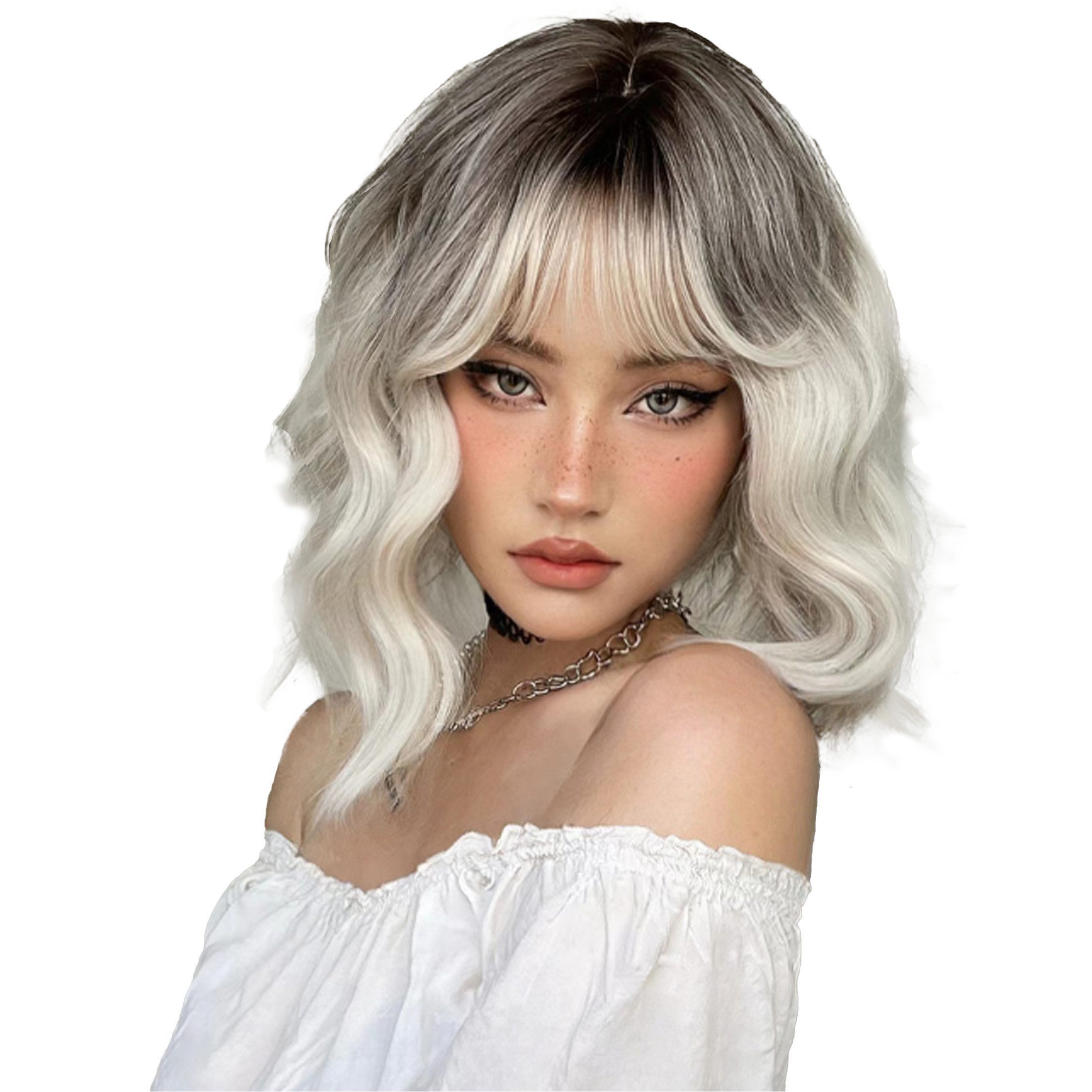 Unsere kurze Perücke mit Pony ist das perfekte Accessoire, wenn Sie auf einer Hochzeit, einem Abschlussball oder einer anderen besonderen Veranstaltung auffallen wollen.Haarfarbe | Platinfarbe |