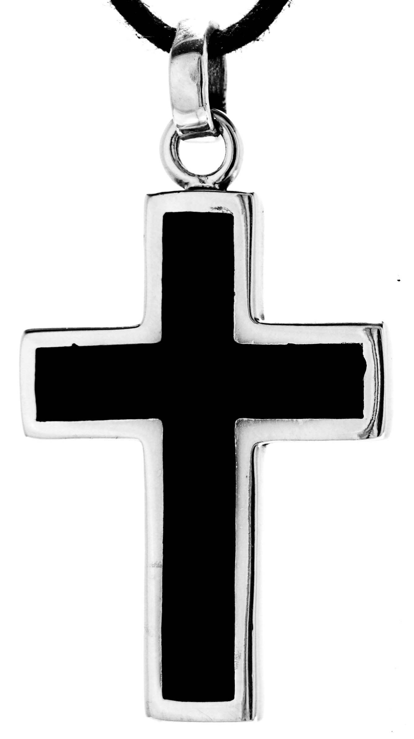 Hochwertig verarbeitetes Kreuz aus massivem 925 Sterling Silber. Der Kettenanhänger ist auf der Vorderseite teilweise geschwärzt, die Rückseite ist glatt poliert.