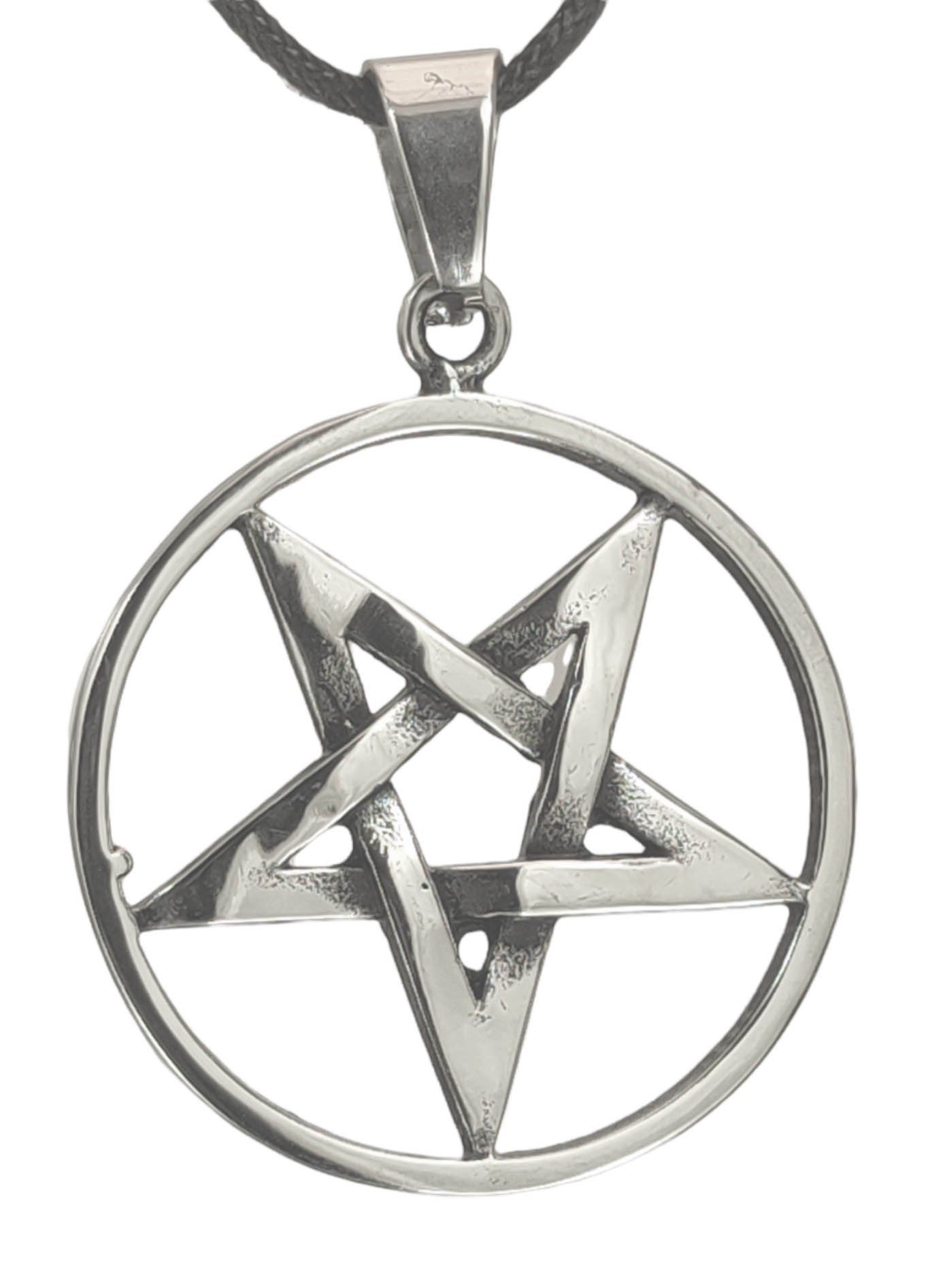 Hintergrund: Das Pentagramm ist ein Stern mit fünf Zacken und kann in einem Strich gezeichnet werden. Es ist ein in der Zauberkunst häufig benutztes Zeichen. Mit der Spitze nach unten wird es auch Drudenfuß genannt und weist auf schwarze Magie hin. Unter Satanisten gilt es als Symbol für den Teufel. Die beiden oberen Zacken des Pentagramms werden als Hörner Satans interpretiert.
