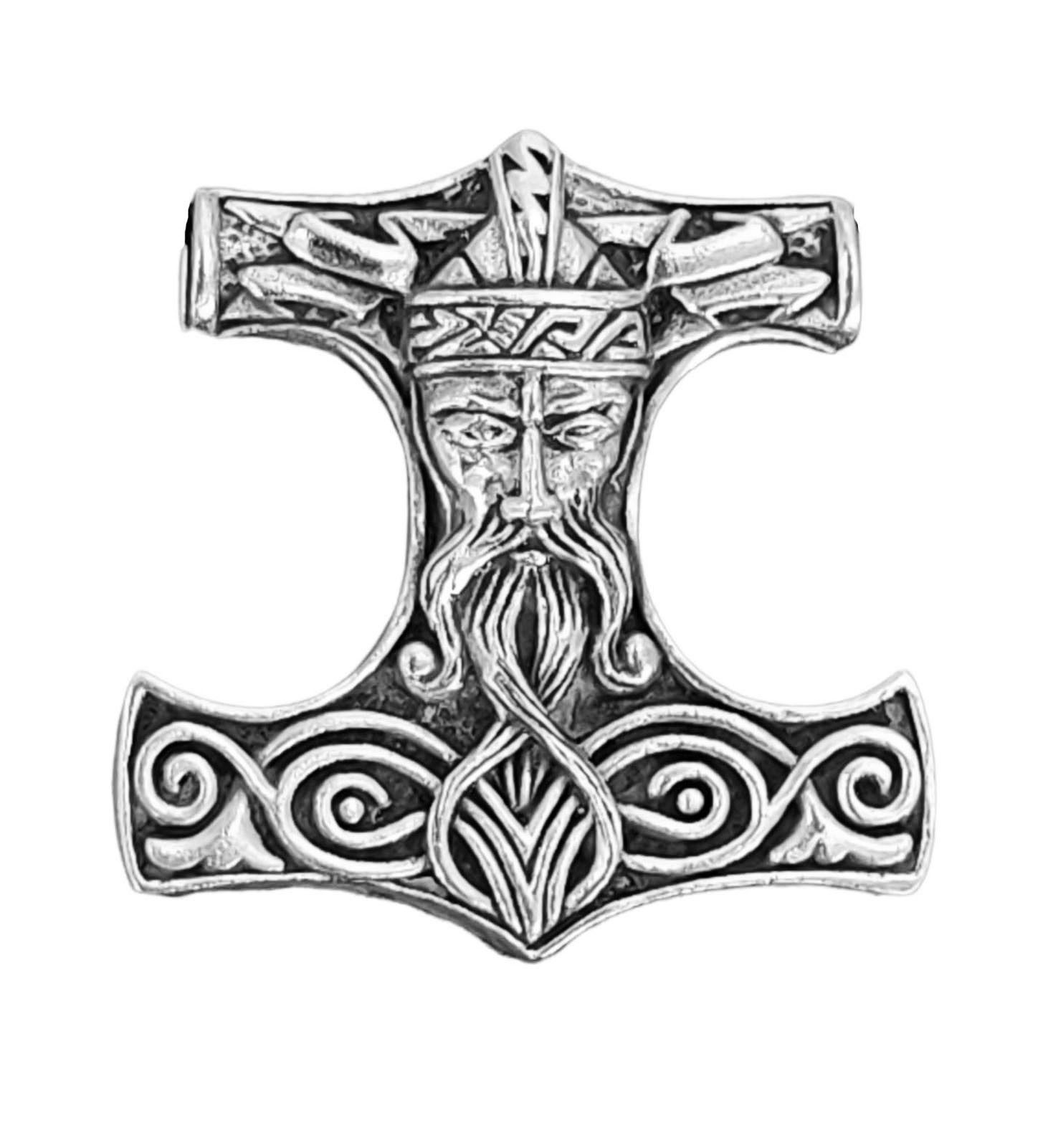 Bedeutung der Symbole: Der Thorshammer ist auch als Thorhammer, Mjölnir oder Mjollnir bekannt. Der nordischen Mythologie nach war Mjölnir die magische Waffe des Donnergottes Thor. Gegen seine Feinde geschleudert, verfehlte der Hammer nie sein Ziel und kehrte stets wieder in die Hand seines Gebieters zurück. Er steht als Symbol für Stärke und Tatkraft. Keltische Knoten haben weder Anfang noch Ende und dienen daher als Symbol für Unendlichkeit oder Ewigkeit. Odin wurde von den Wikingern als allmächtiger Göttervater verehrt. Er galt sowohl als Gott des Krieges als auch der Weisheit.