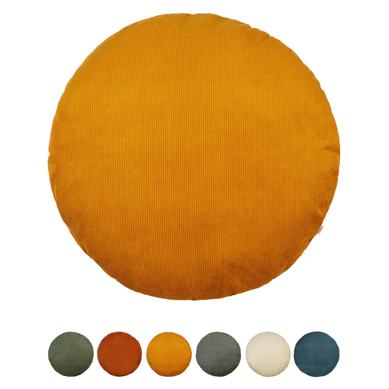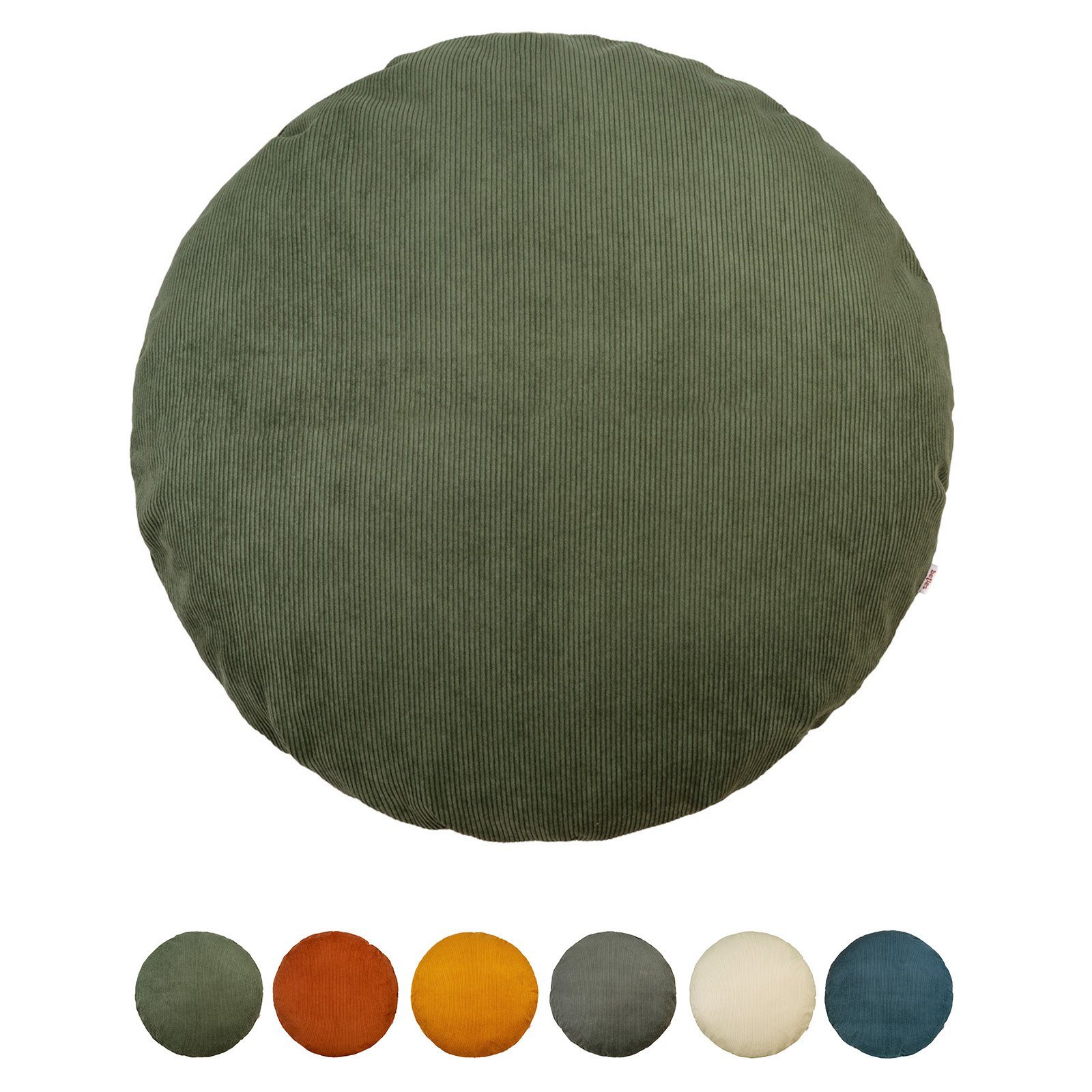 LIEFERUMFANG: Samtige Cord Kissenhülle rund ca. 80 cm Ø für Boden, Couch, Sofa-Landschaft. Hol Dir in Deine Wohnumgebung den Hygge Lebensstil - Heimelig – Kuschelig – Hyggelig