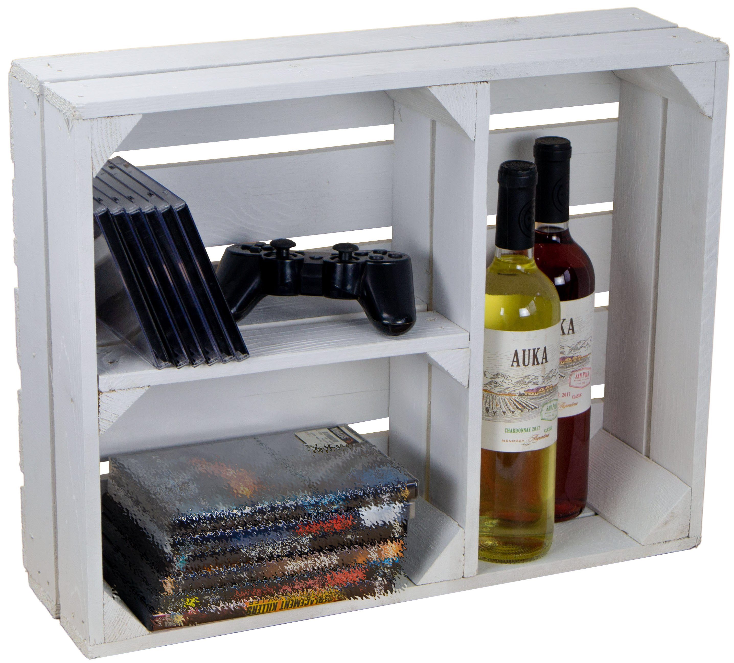 Schöne weiße Obstkiste "Traute" mit zwei Einlegeböden.